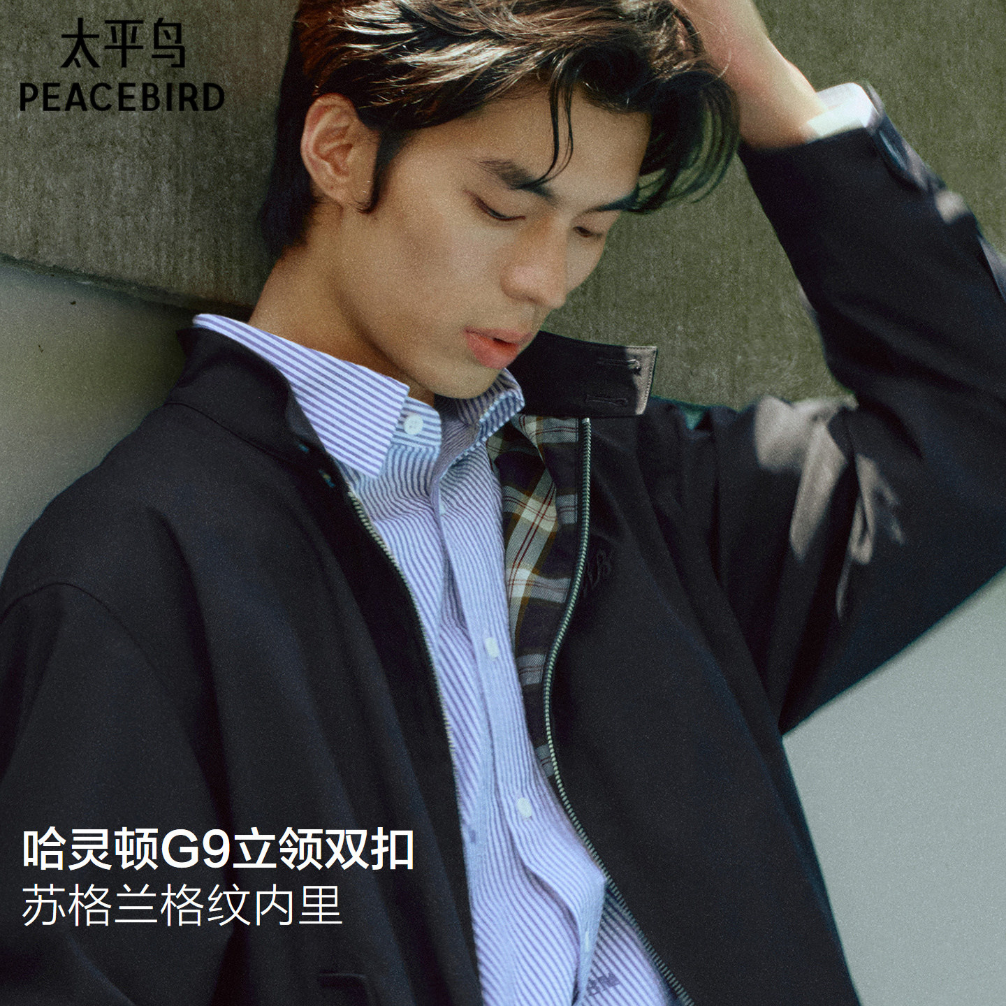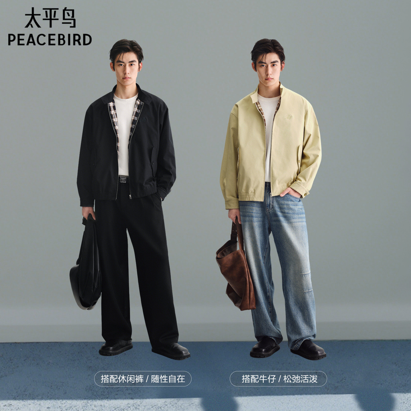 太平鸟男装 行政夹克秋新款宽松通勤教练茄克立领哈林顿质感外套