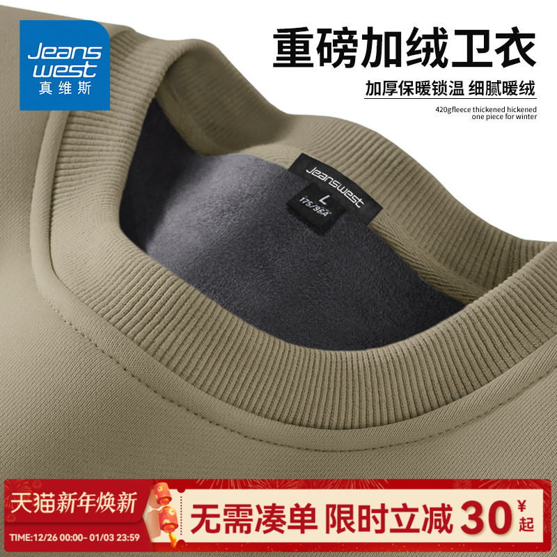 GV真维斯加绒卫衣男秋冬款加厚圆领外套男款冬季重磅保暖上衣服C