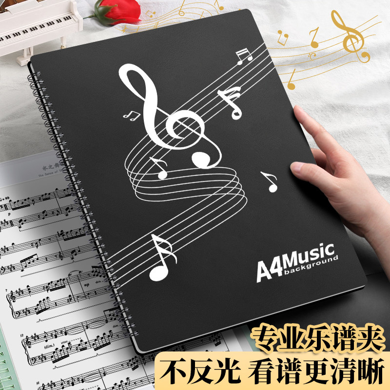 a4可修改乐谱夹册改谱钢琴专用音乐家声乐曲儿童合唱团黑色架子鼓古筝插页本小提琴五线谱吉他翻页文件夹夹子