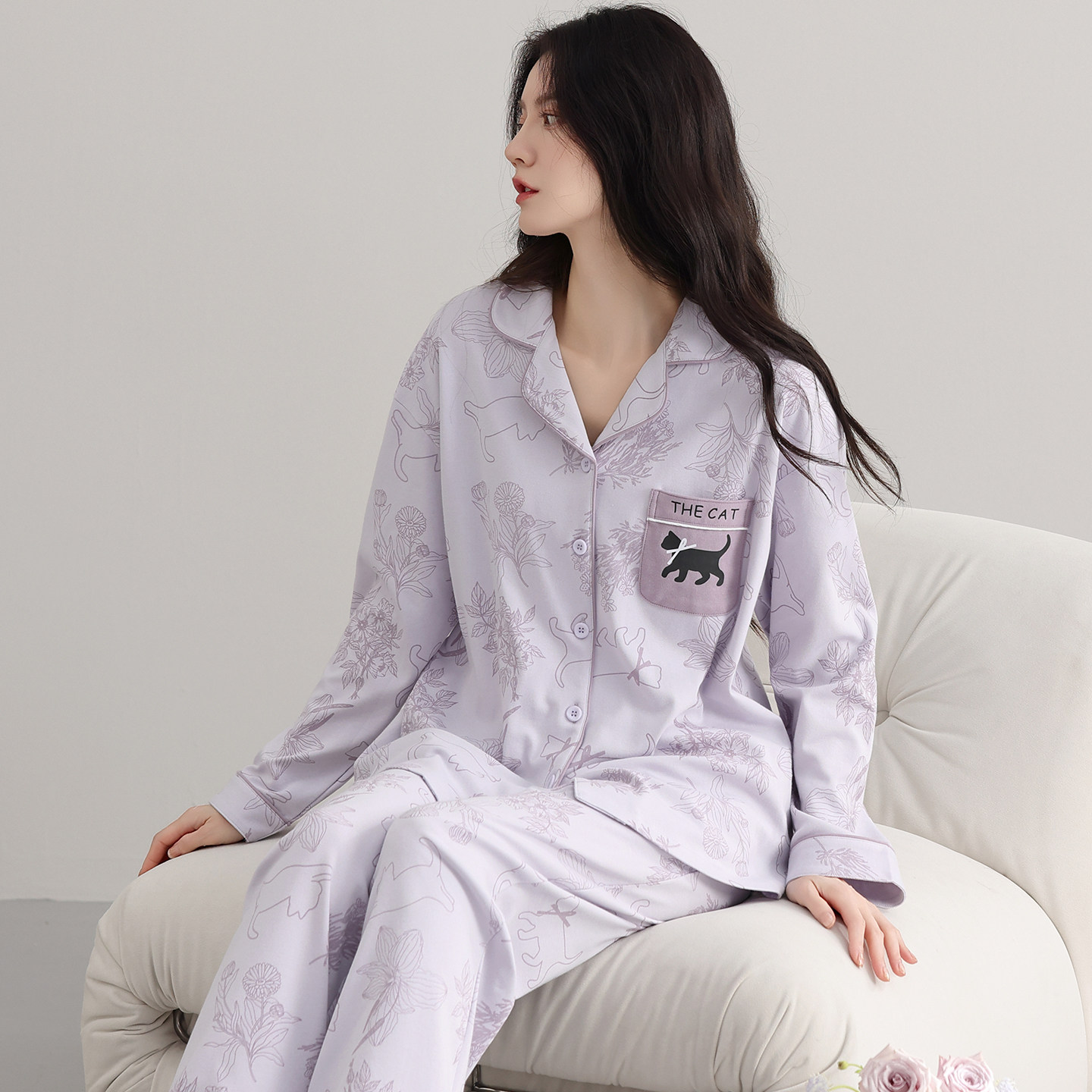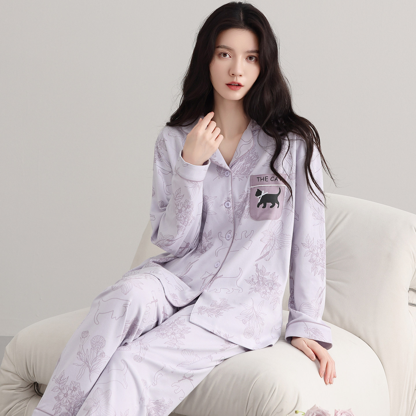 浪莎睡衣女春秋款纯棉长袖2025年新款秋冬大码薄款宽松开衫家居服