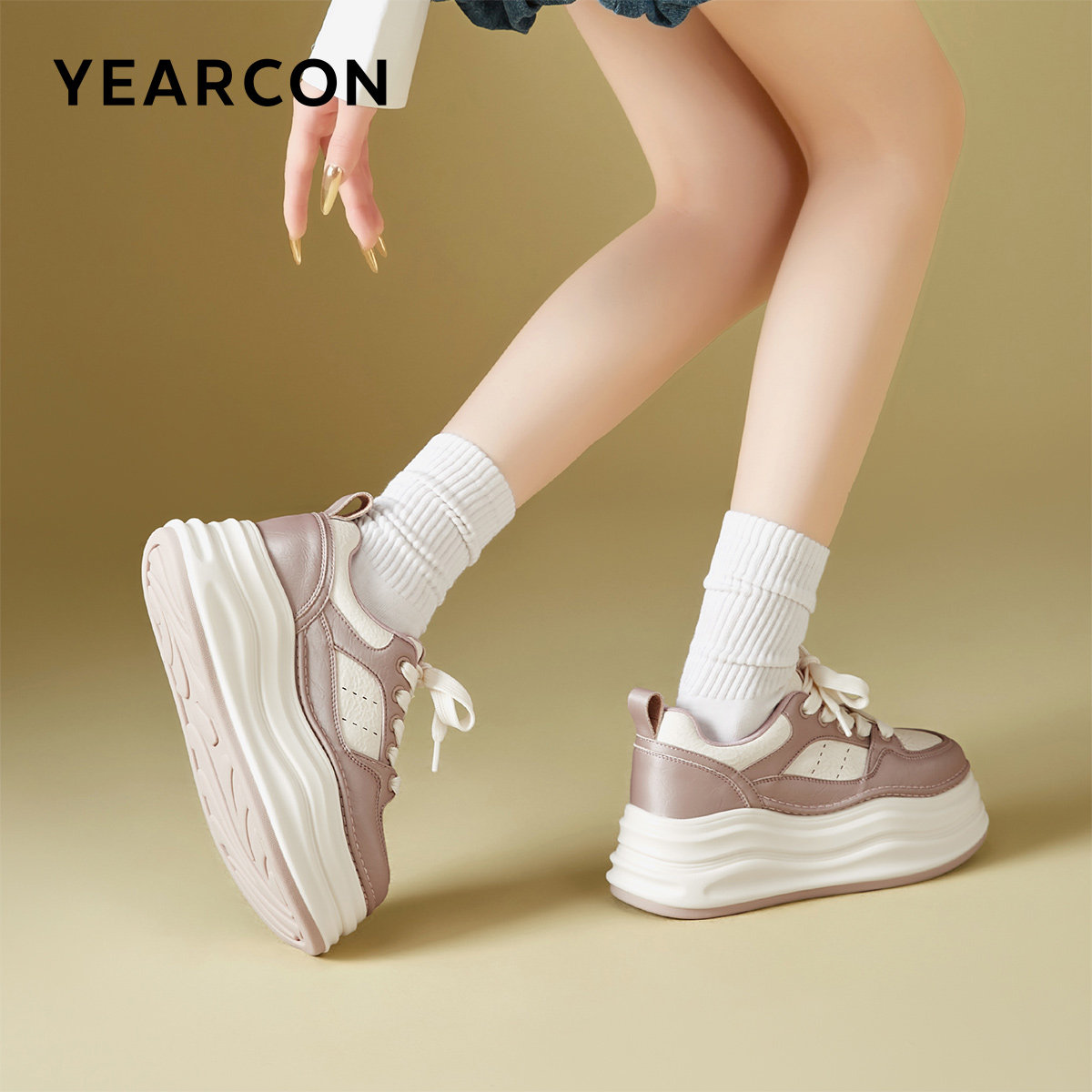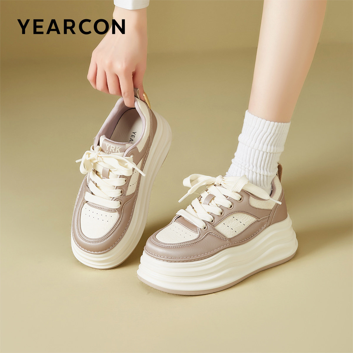 意尔康女鞋2025新款休闲女士单鞋松糕厚底板鞋时尚皮鞋英伦风