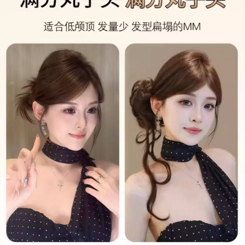 低扎丸子头假发鸡毛头抓夹盘发发包慵懒感造型头饰自然蓬松后脑勺