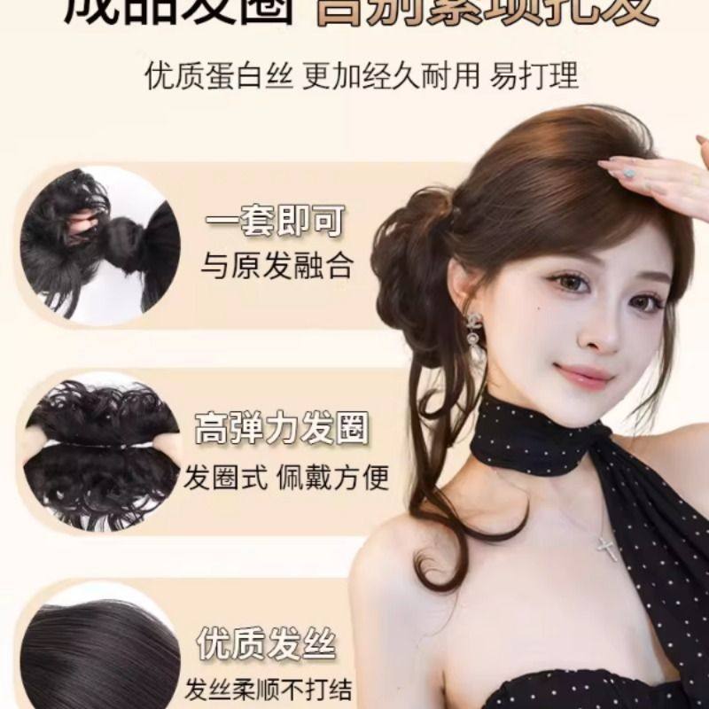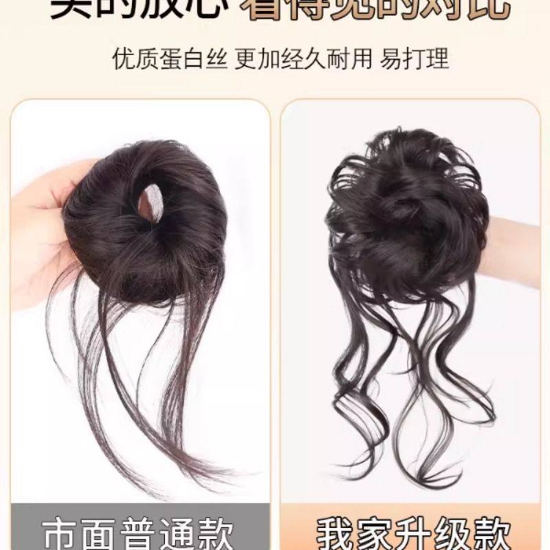 百搭龙须侧丸子头假发发圈女温柔千金感盘发神器蓬松花苞头假发包