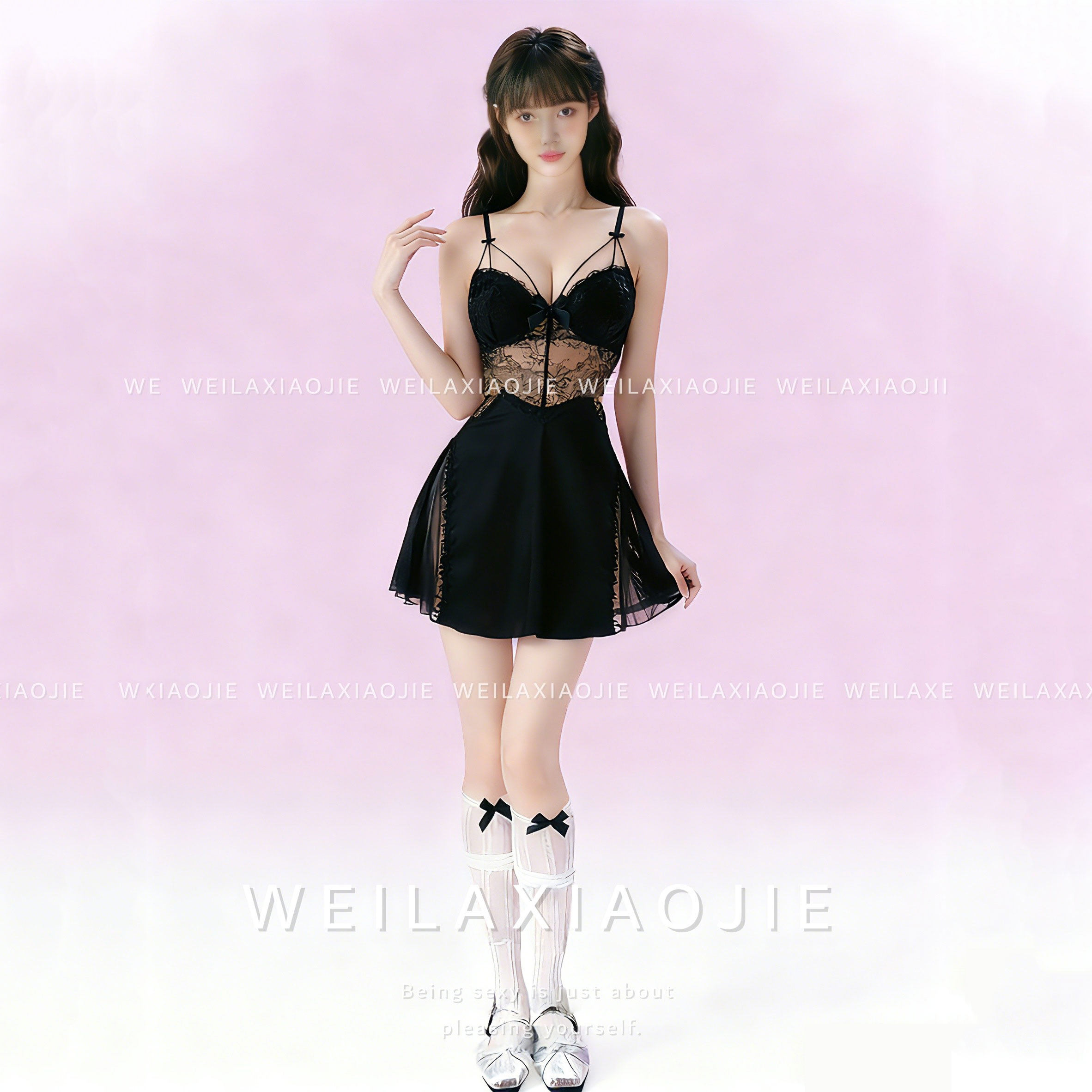 大码性感法式纯欲蕾丝睡裙情趣透视内衣约会内衣新品2025镂空睡衣