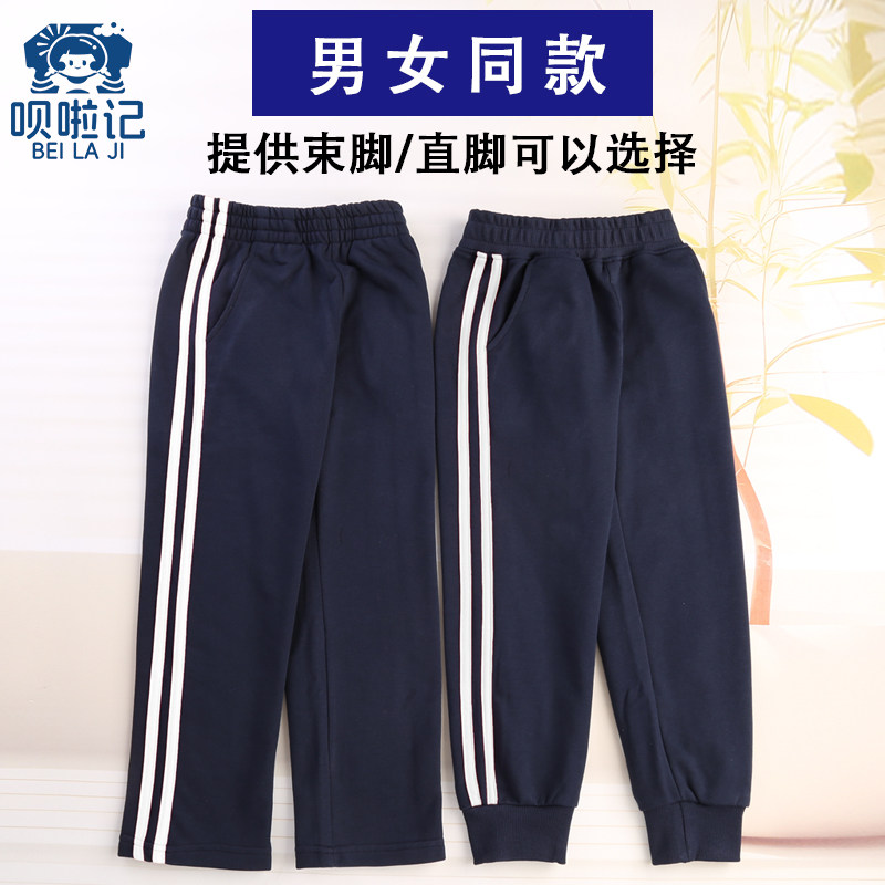 儿童长裤藏蓝色校服裤子中小学生一条二杠深蓝女童男童加绒运动裤