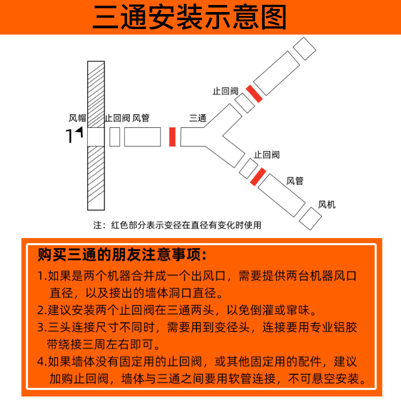 y型排风管三通100200排气扇气管风管PVC接头150油烟机通风变径