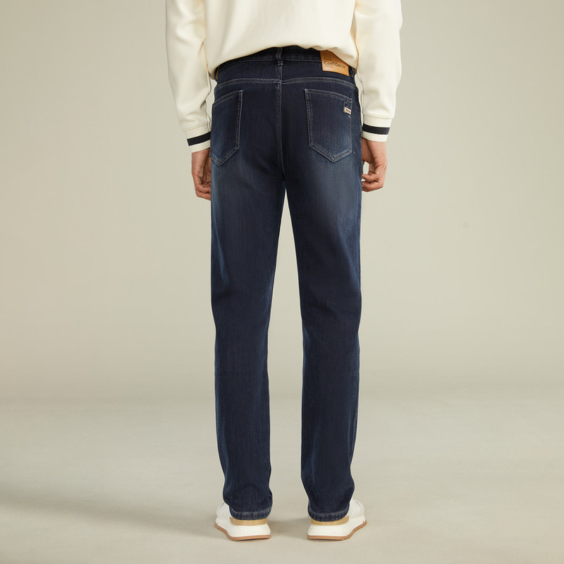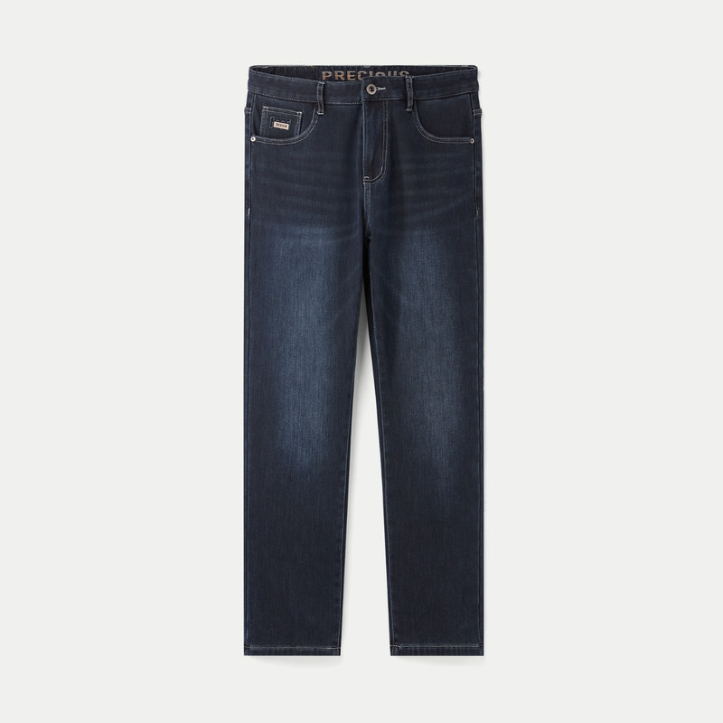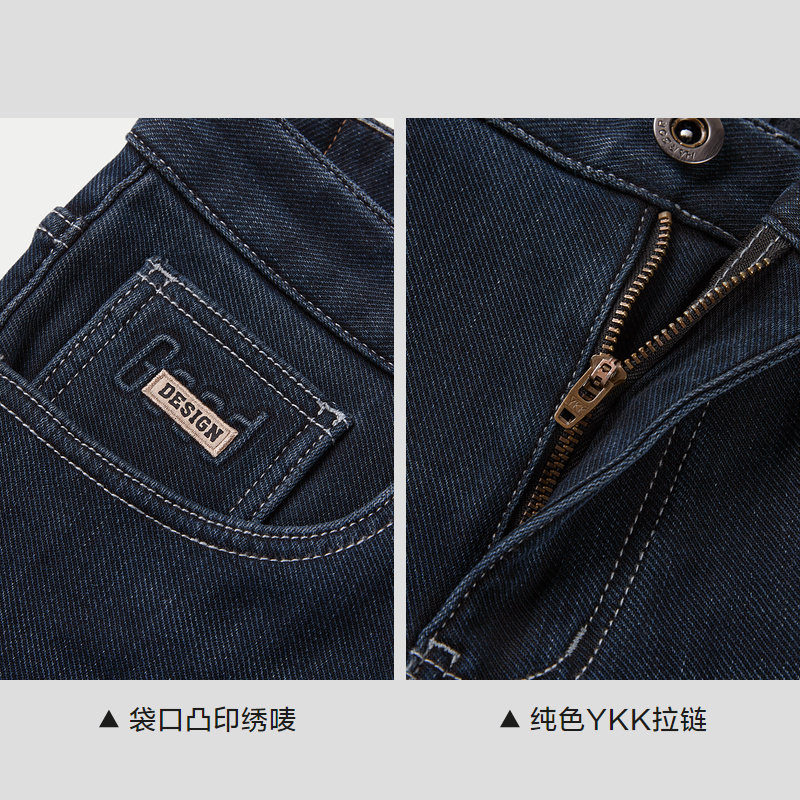 HLA/海澜之家一条过冬牛仔裤秋冬直筒中高腰加绒加厚保暖裤子男