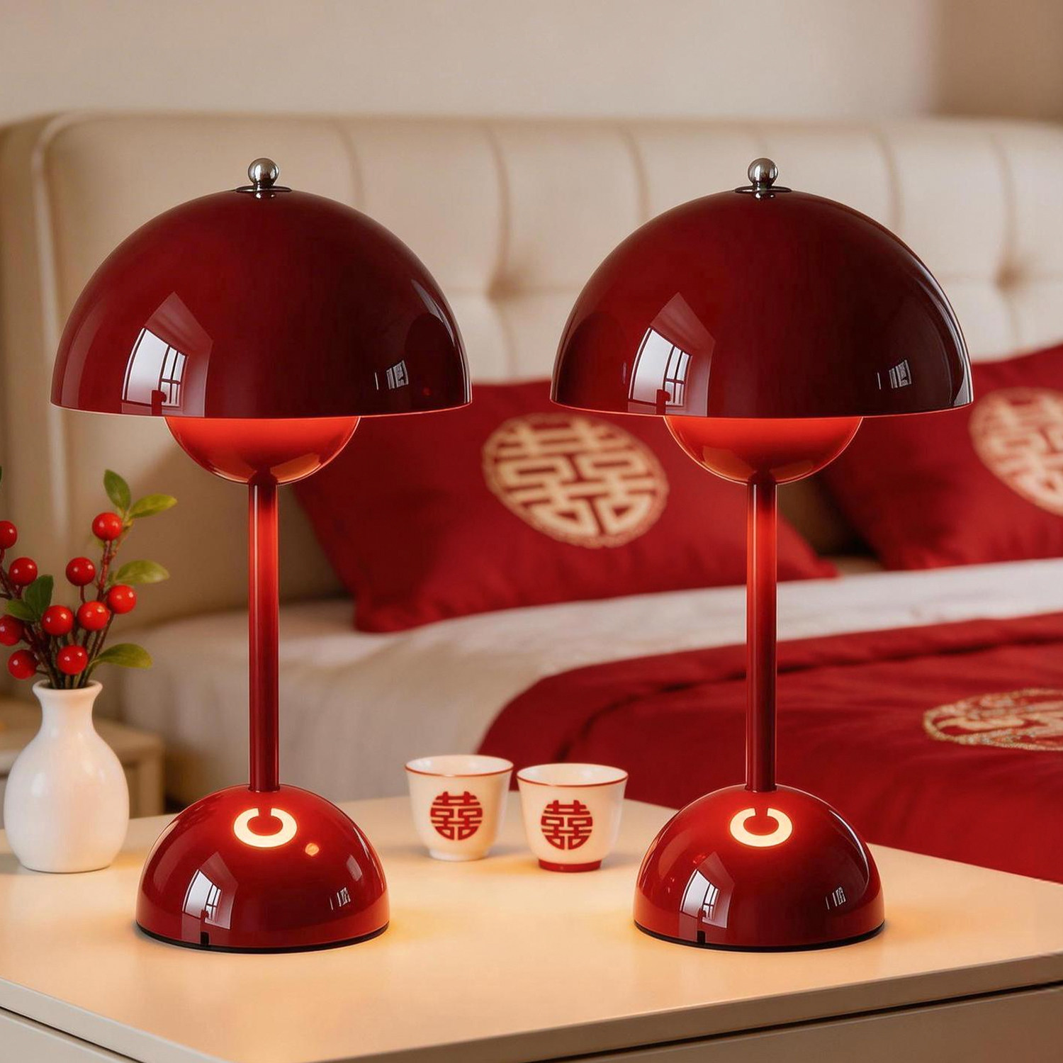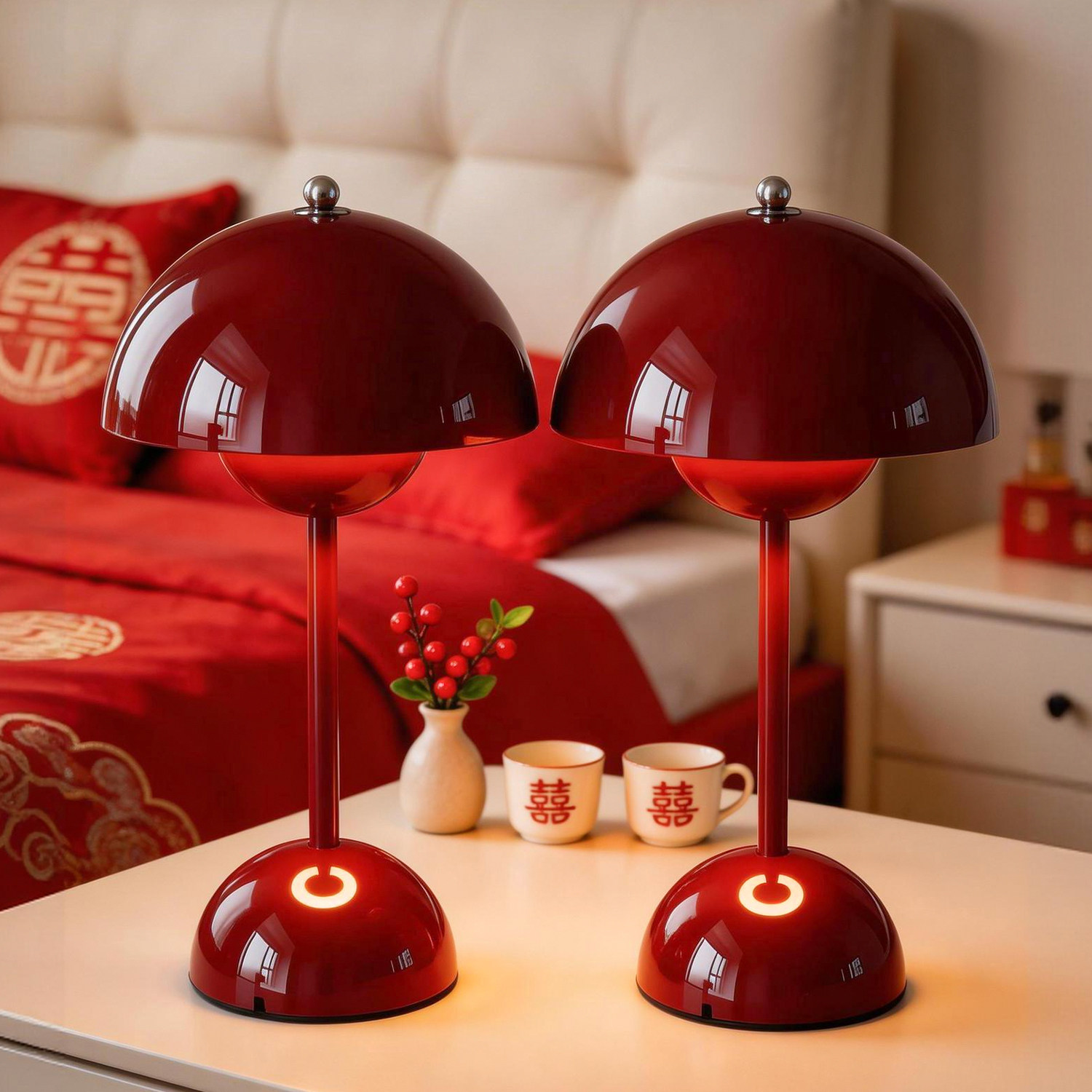 结婚台灯婚房床头灯新娘陪嫁灯送新人卧室长明灯新婚礼物红色喜灯