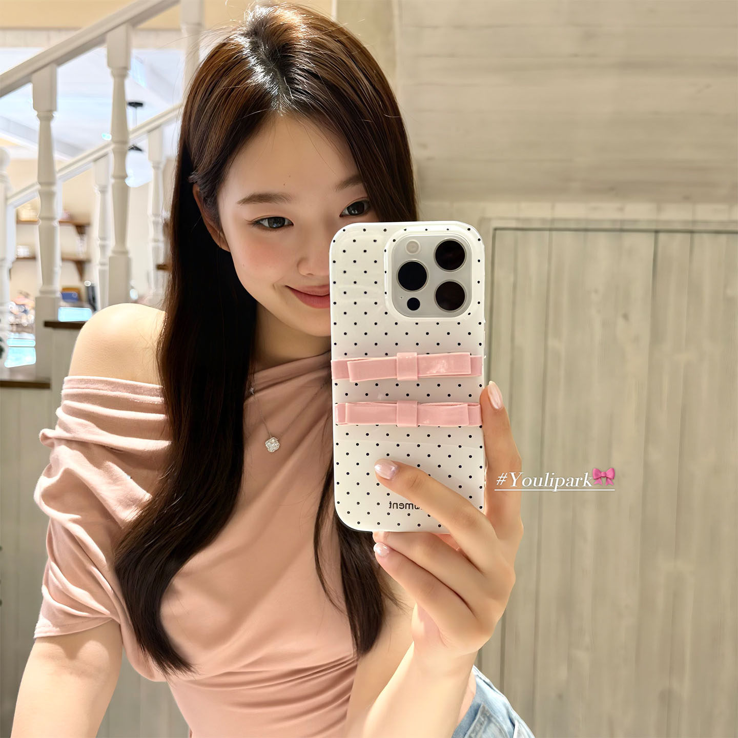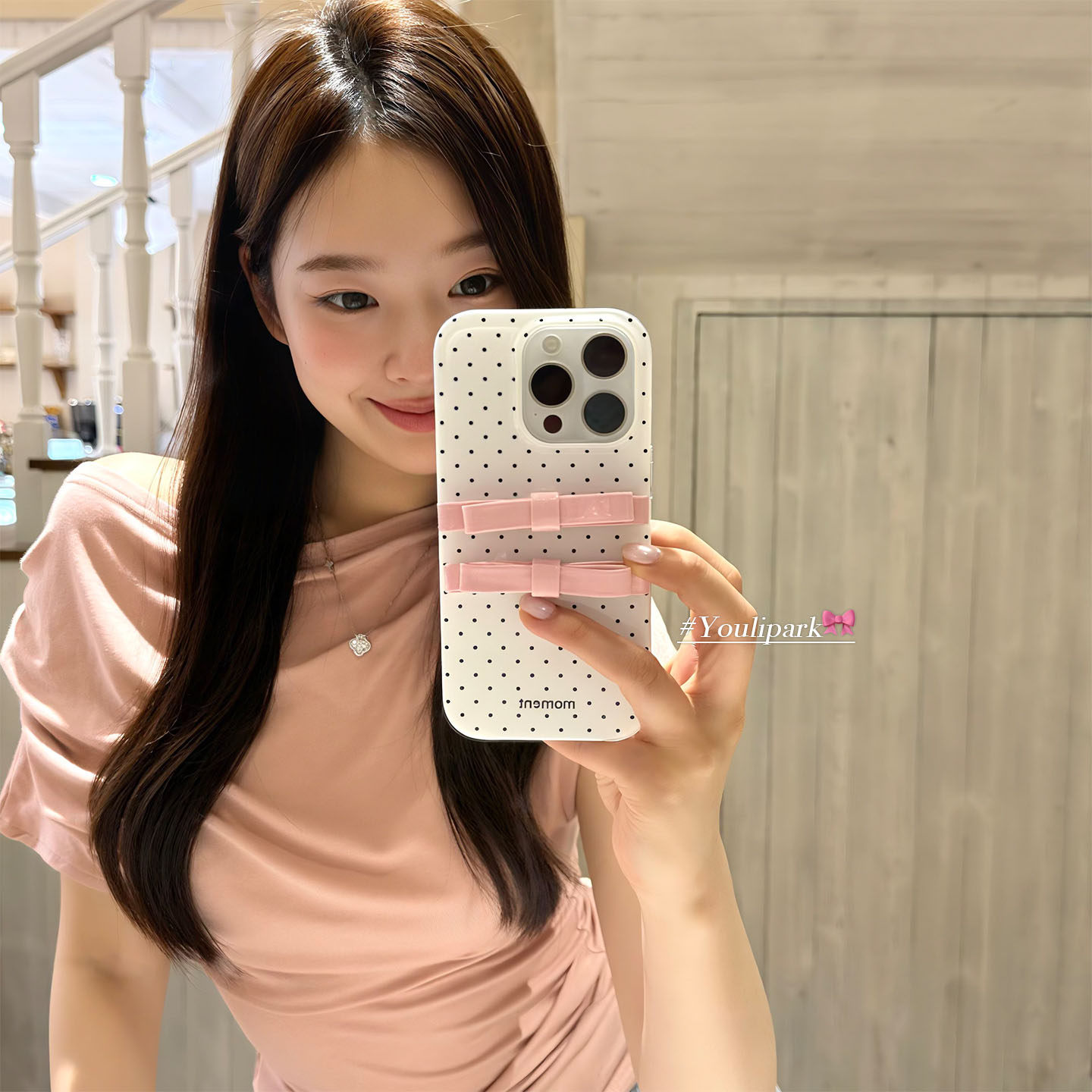 由里公园ins小众少女甜美波点立体蝴蝶结15适用17pro苹果17ProMax手机壳iPhone16全包17新款14Promax保护套13