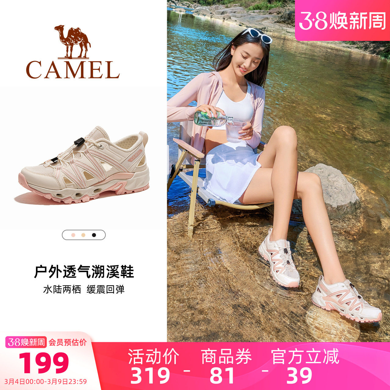 骆驼女鞋户外溯溪鞋夏季新款女鞋透气轻便涉水网鞋徒步运动凉鞋女