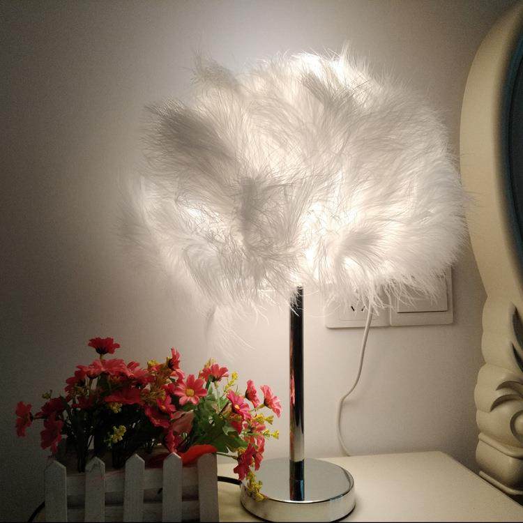 羽毛台灯卧室床头柜台灯创意时尚浪漫现代简约婚房装饰礼品灯饰