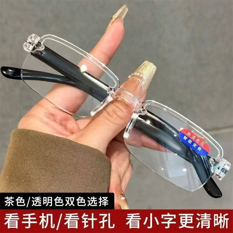 2副新款老花镜自动调节度数智能变焦高清防蓝光多焦点老人花眼镜