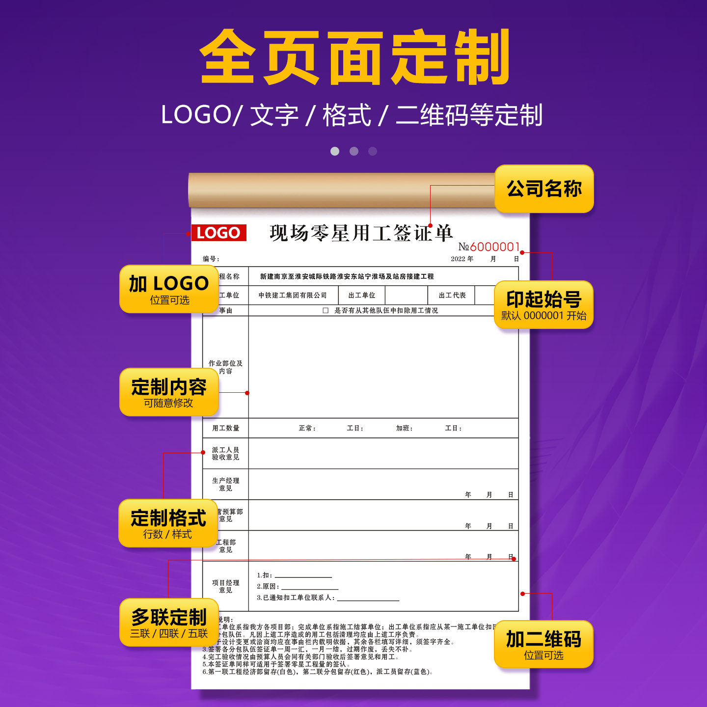 【工程零星用工签证单】定制二联建筑工地临时工施工结算单施工班组零工现场签工单钟点工劳务派遣记工确认单