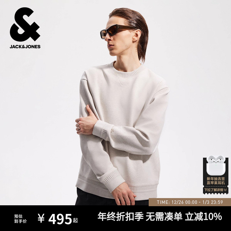 杰克琼斯男装秋冬卫衣纯色宽松圆领日常长袖上衣225333042