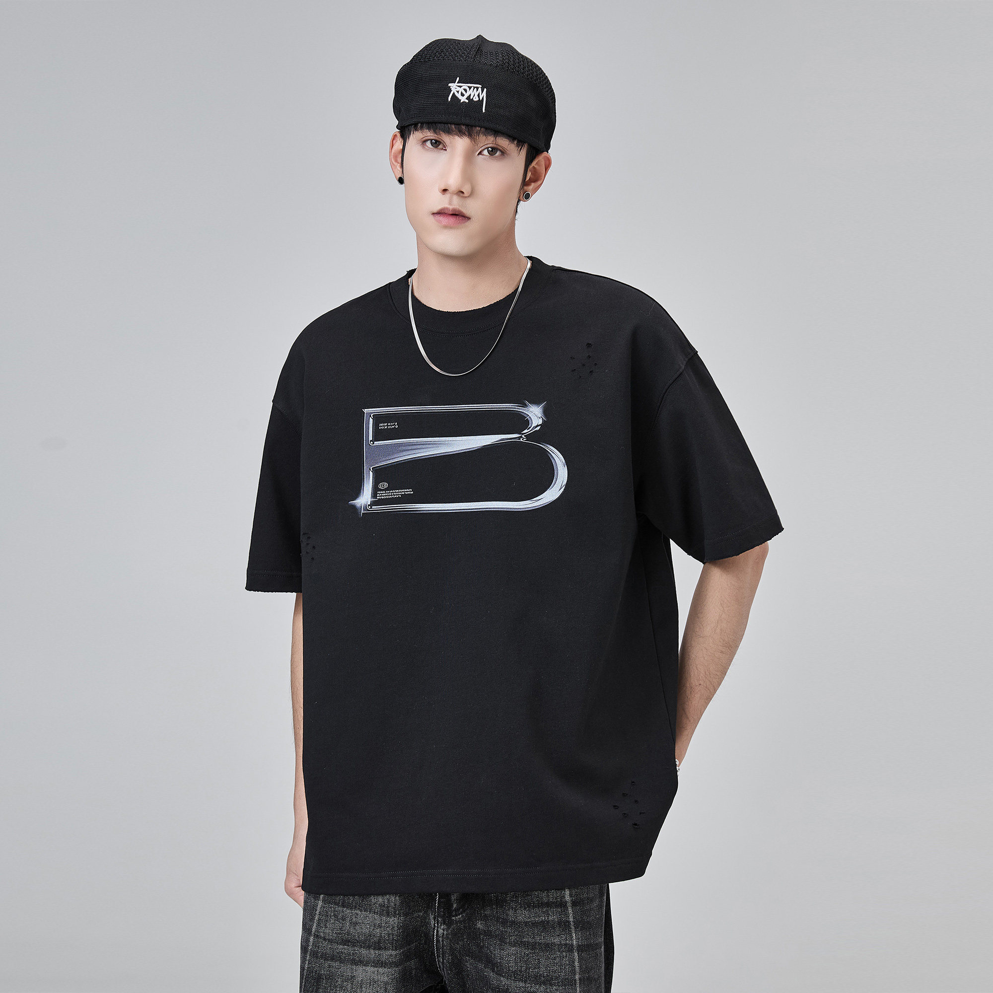 NX真维斯潮牌男装2025夏季新款男女同款短袖纯色纯棉圆领半袖T恤D