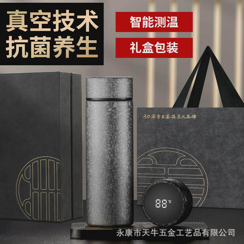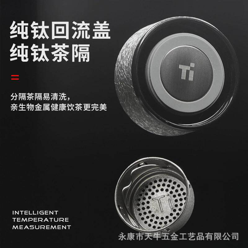 纯钛保温杯男士智能显温高端级商务礼盒茶水分离杯便携新款水杯子