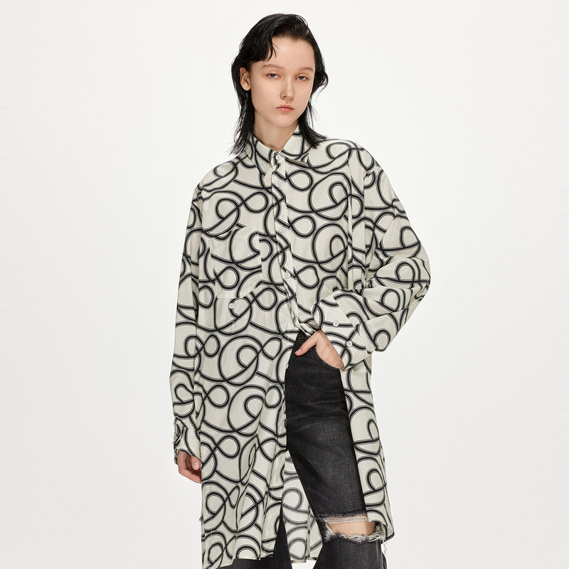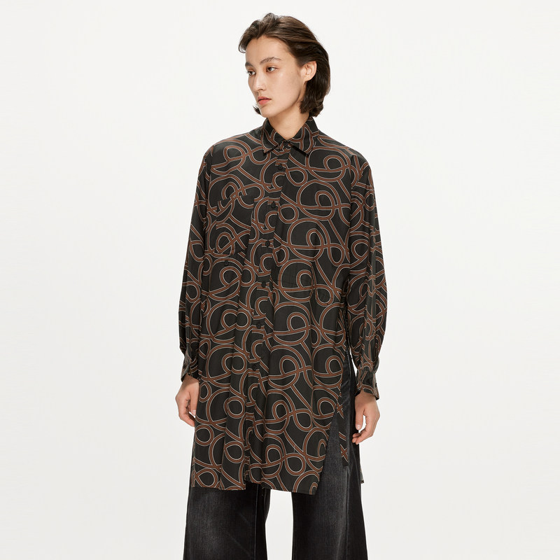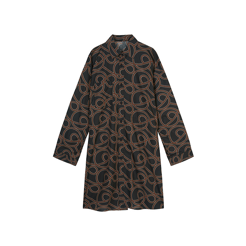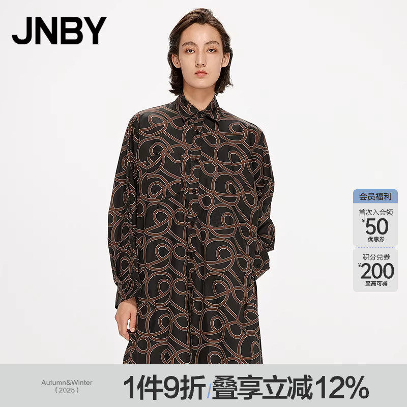 JNBY/江南布衣折扣春夏衬衫裙子女连衣裙休闲宽松印花翻领中长袖