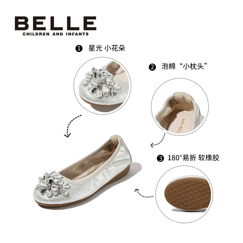 百丽童鞋女童皮鞋2026春季新款儿童蛋卷鞋小女孩水晶公主鞋舞蹈鞋