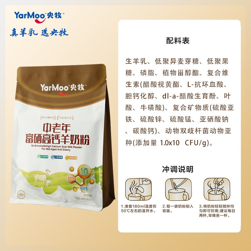 央牧中老年富硒高钙羊奶粉成年男女高蛋白早餐全脂奶粉老年人袋装