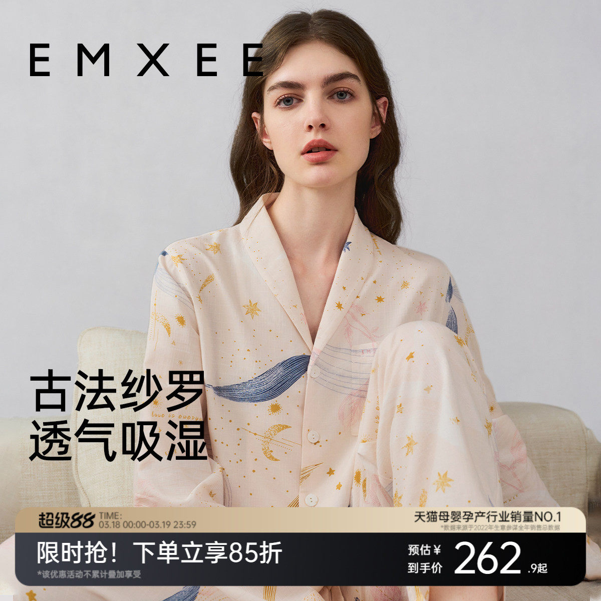 十月结晶风悦花信月子服纯棉家居服套装纱罗10A抗菌超透气春季款