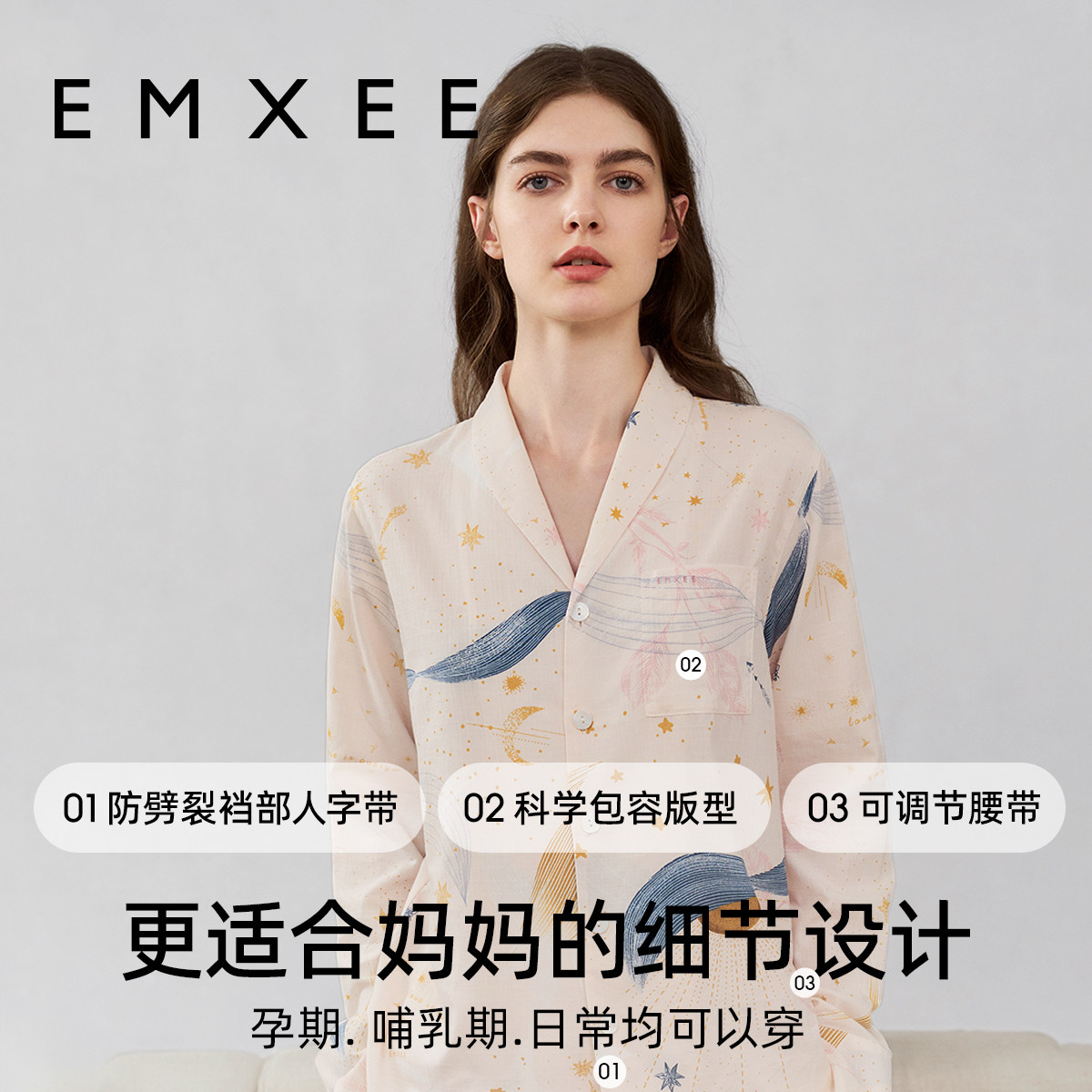 十月结晶月子服孕产妇胸垫哺乳睡衣产后纯棉怀孕期家居服套装秋季