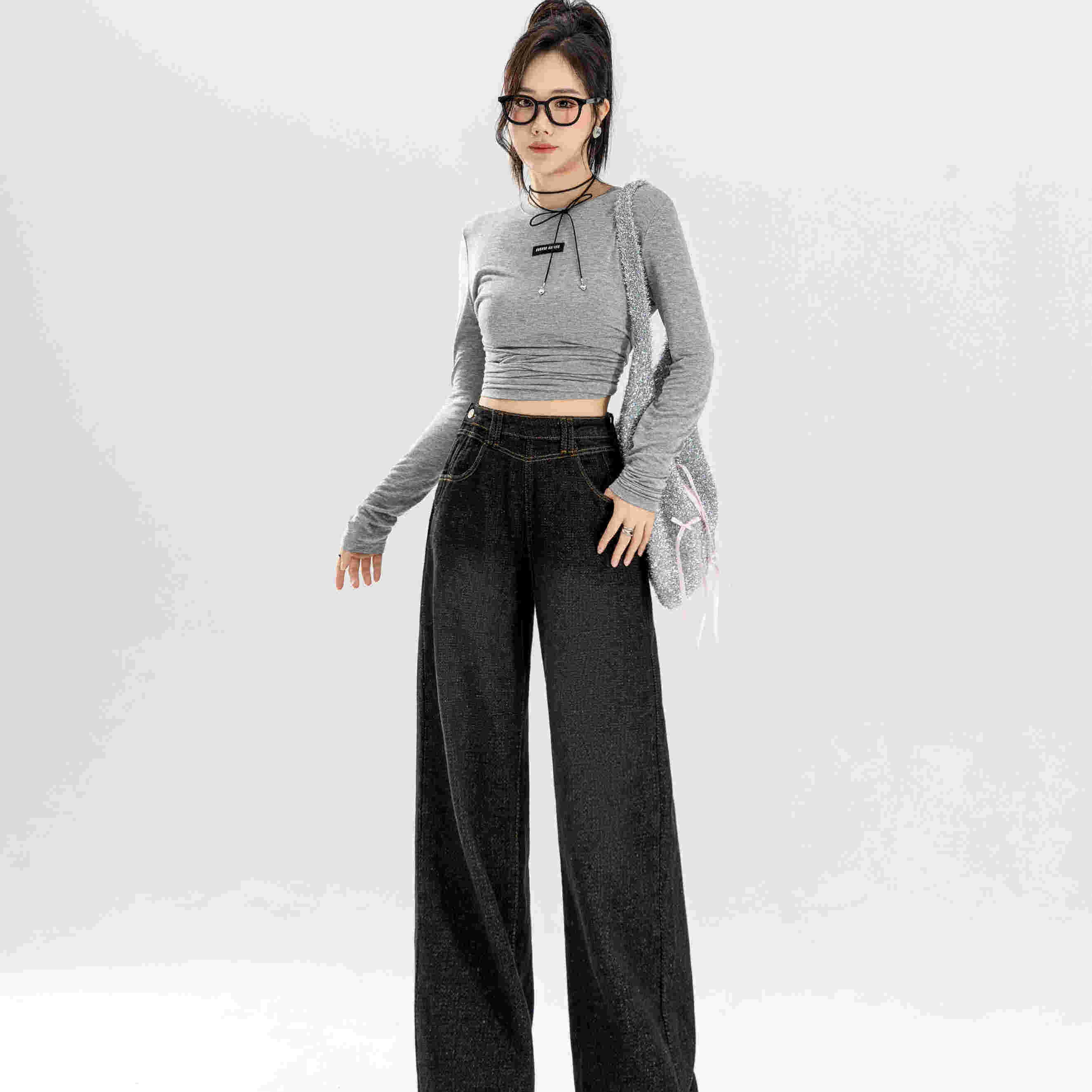 王家有鱼秋冬新款加绒阔腿裤2025百搭修身显瘦宽松直筒牛仔裤子女