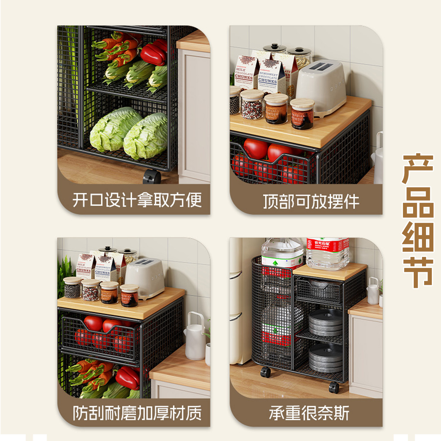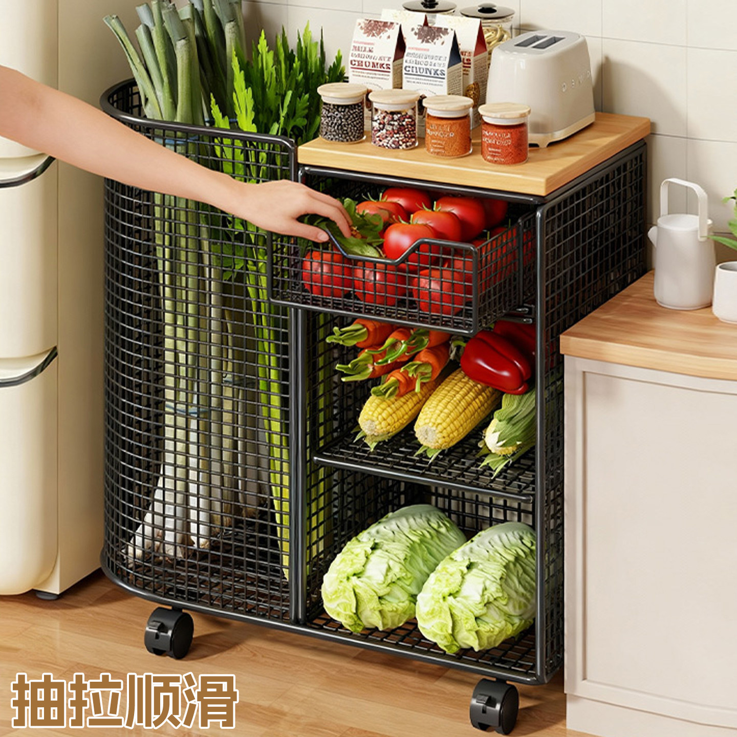 蔬菜抽拉架收纳筐装菜落地多层放菜架子家用收纳菜篮子置物免安装
