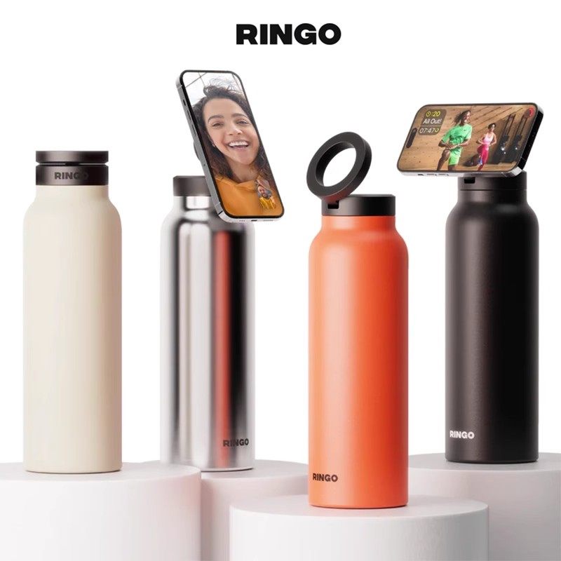 Ringo磁吸保温杯手机支架magsafe多功能拍照直播架子适用苹果IPHONE15/16暖水杯不锈钢运动水壶冷水瓶自拍架
