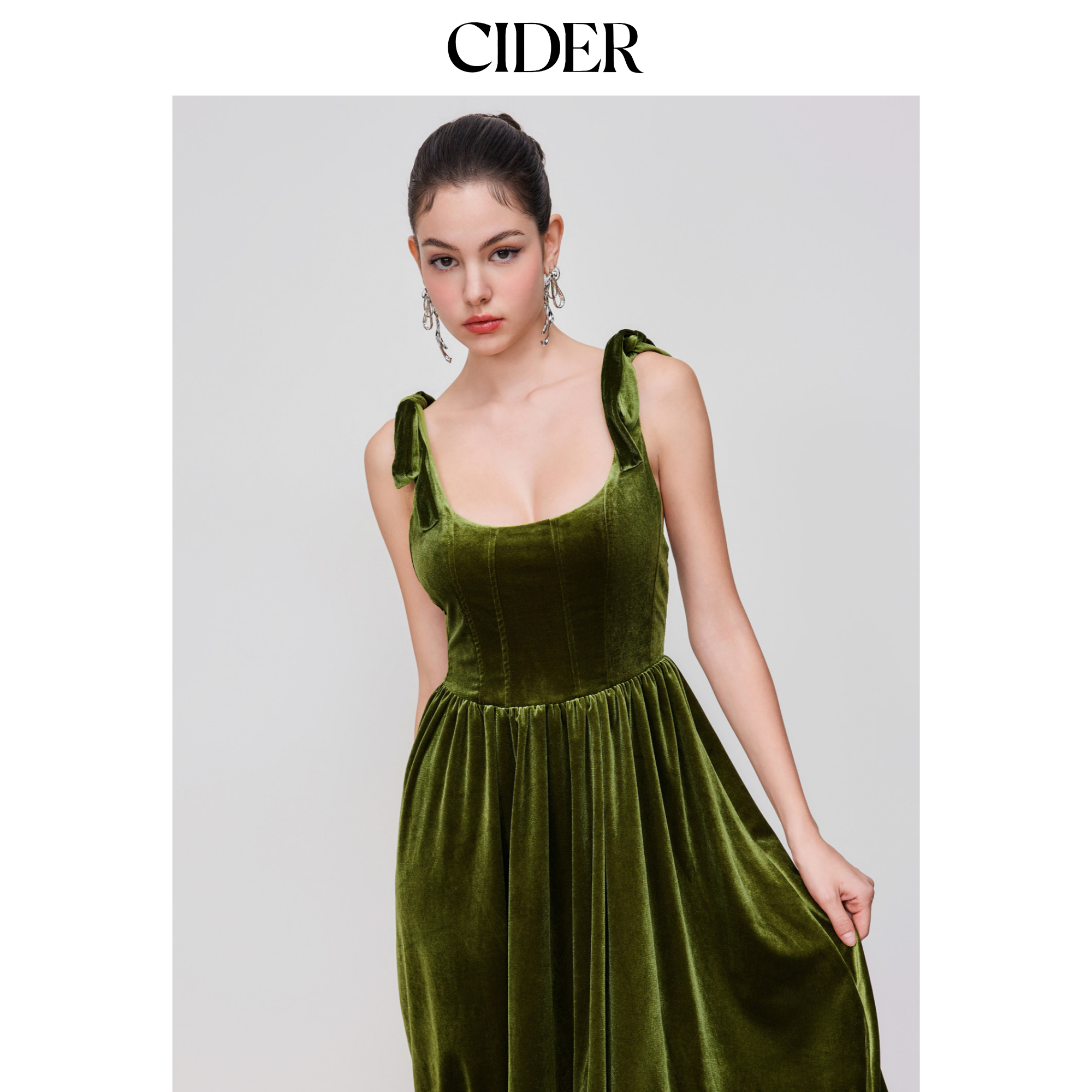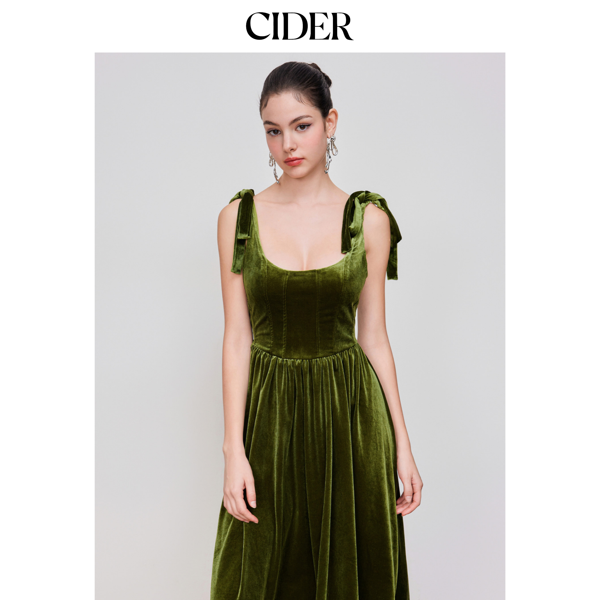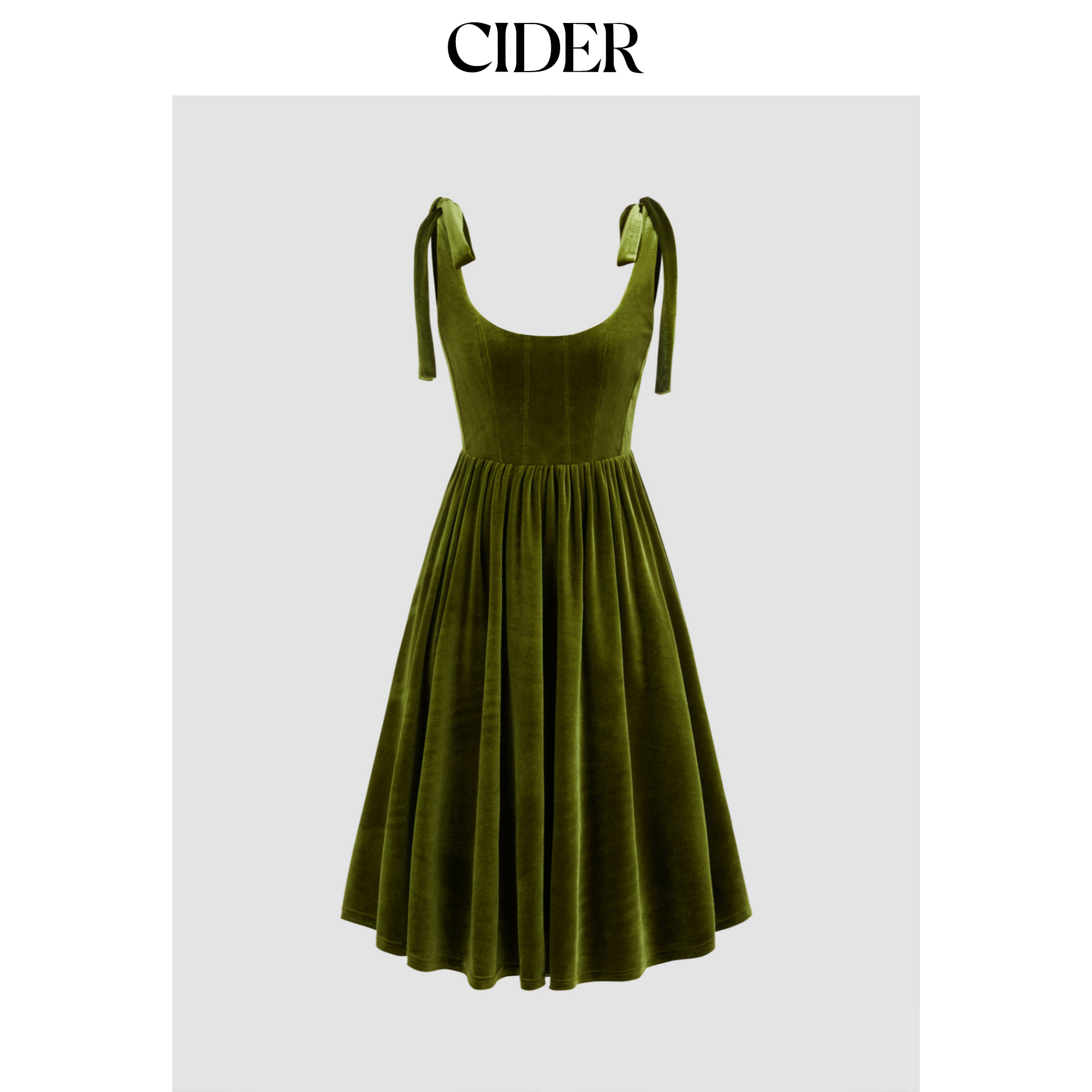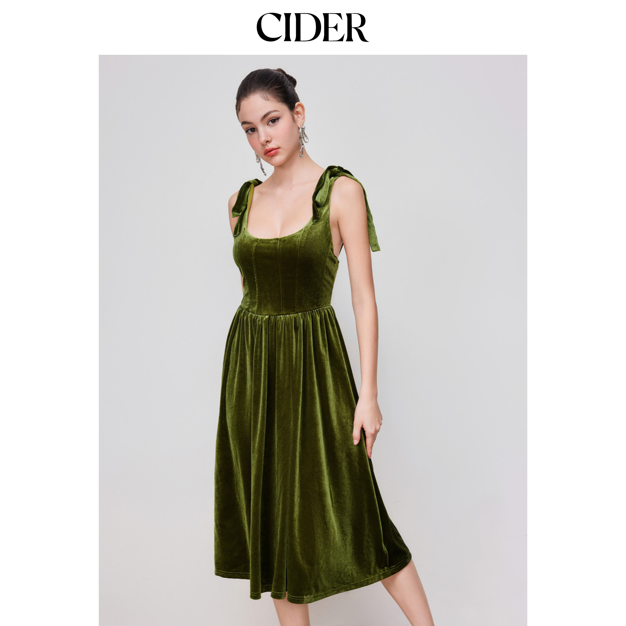 CIDER 秋冬女装色系带天鹅绒圆领中长连衣裙113885845