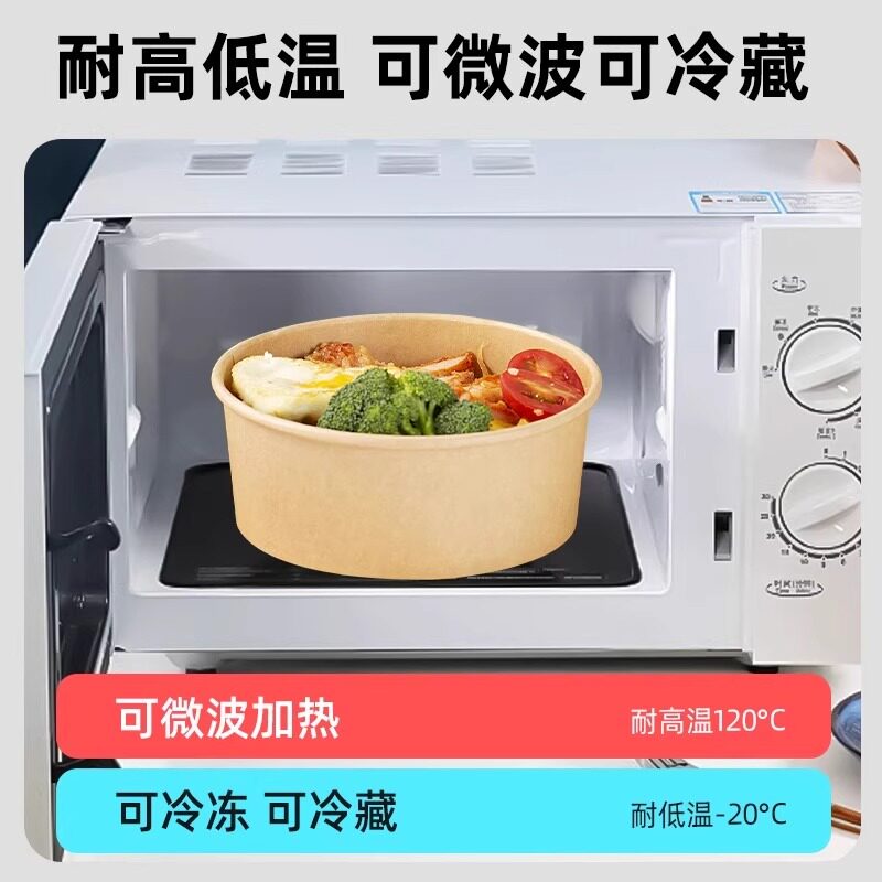 一次性加厚牛皮纸打包盒纸碗圆形饭盒外卖快餐盒水果带盖微波炉