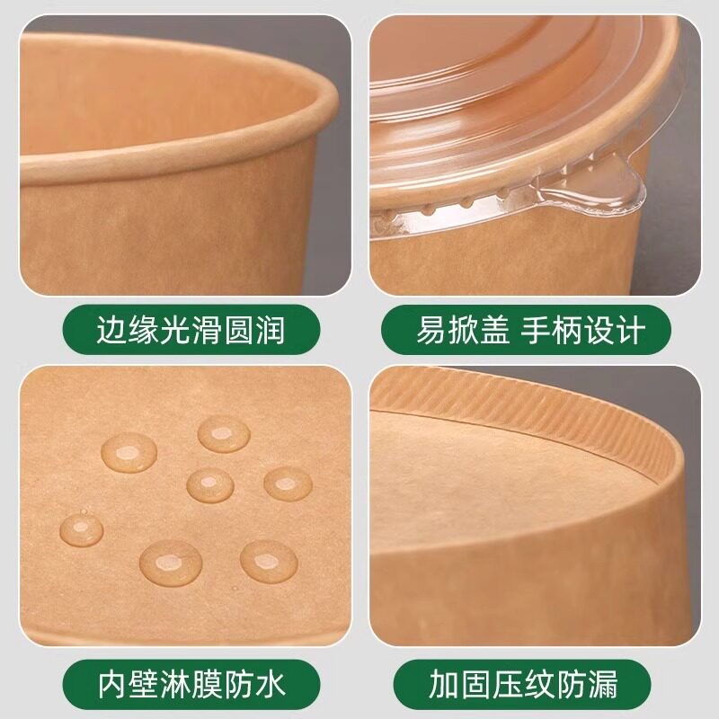 程圆商用一次性纸碗加厚圆形外卖小吃打包餐具饭盒带盖餐盒汤碗