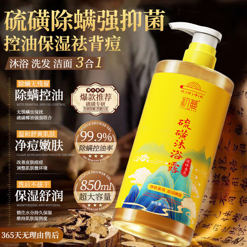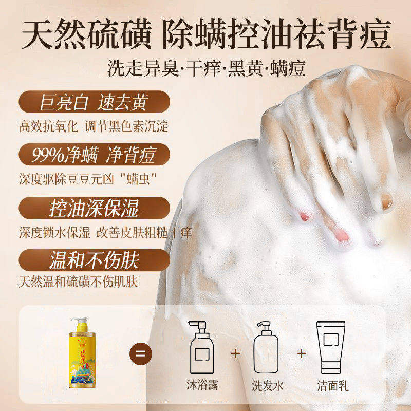 硫磺除螨沐浴露皮肤瘙痒祛痘液体香皂去鸡皮保湿女士男士官方正品
