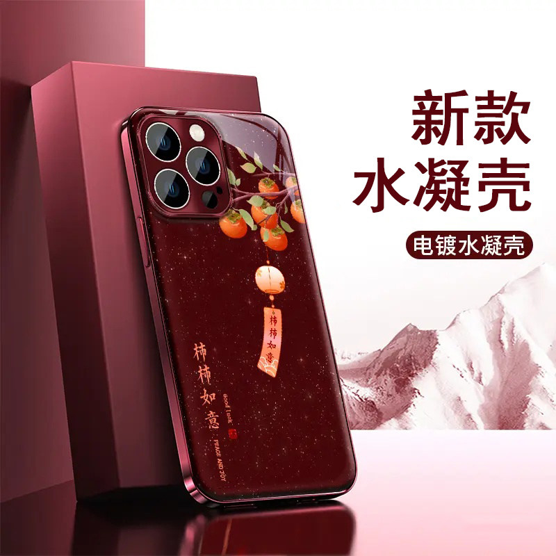 柿柿如意电镀水凝壳适用苹果/华为荣耀/oppo/vivo/小米手机壳新款超火17promax全包防摔女款带手链巨好看外壳