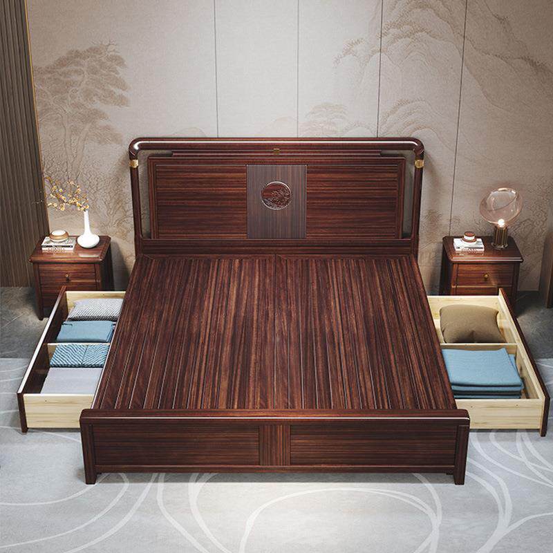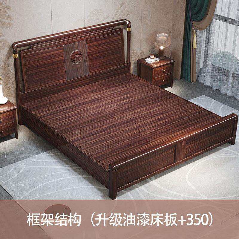 乌金木实木床新中式1.8m双人床主卧婚床1.5m经济型气压高箱储物床