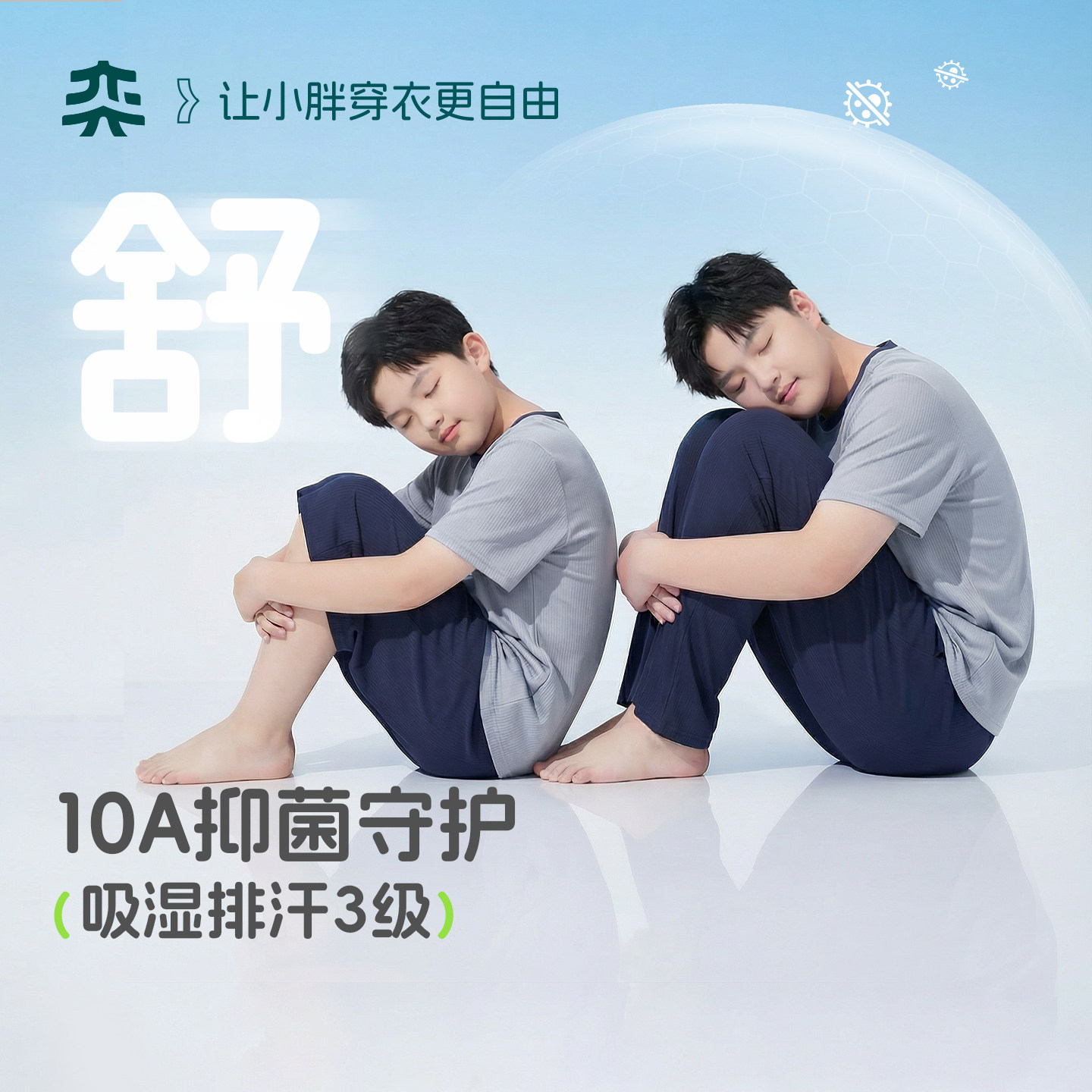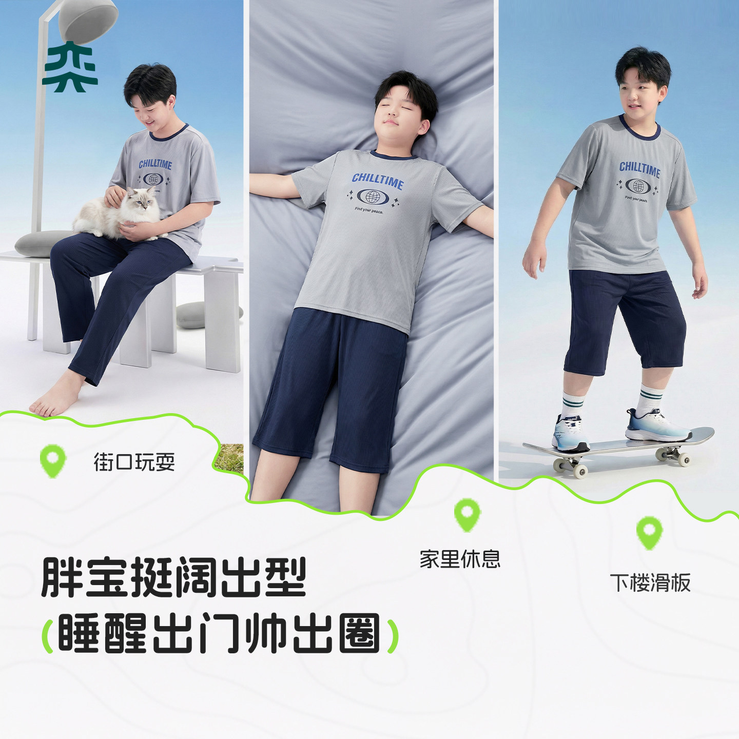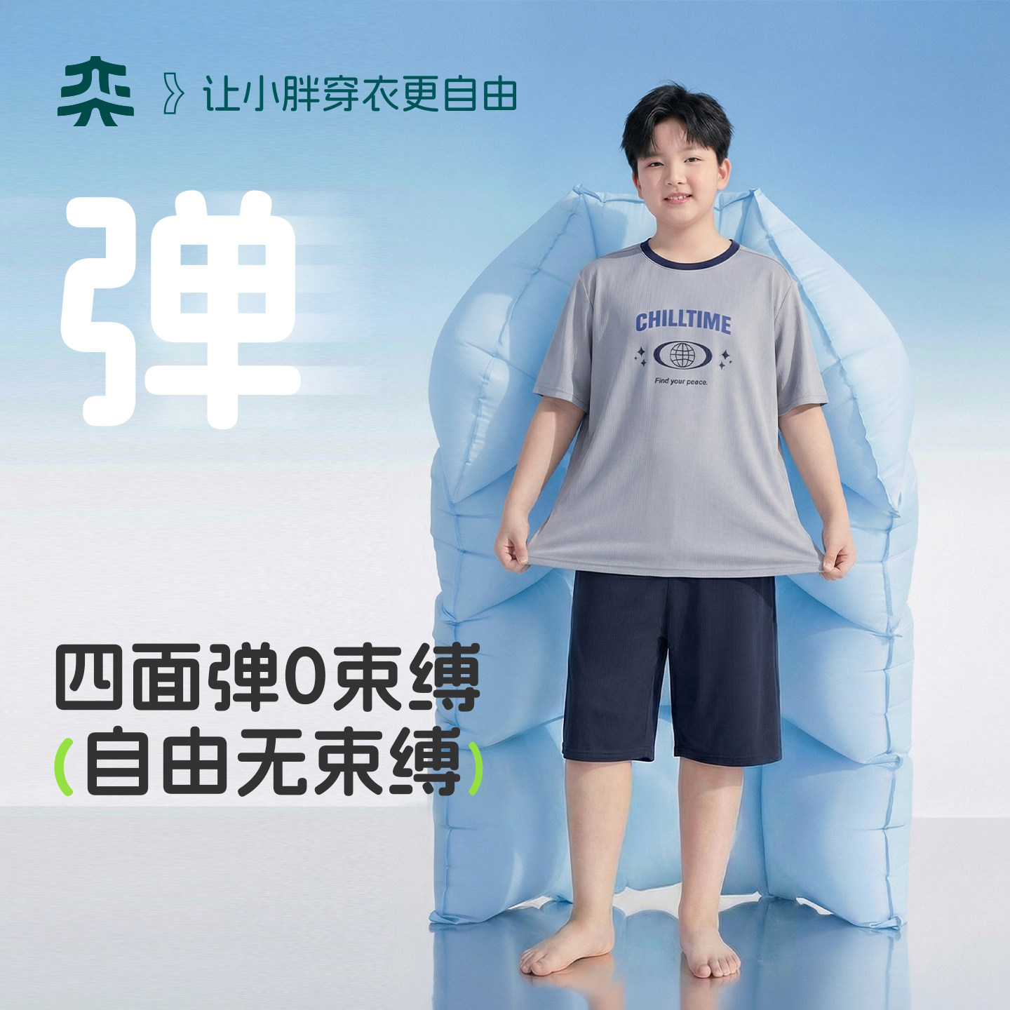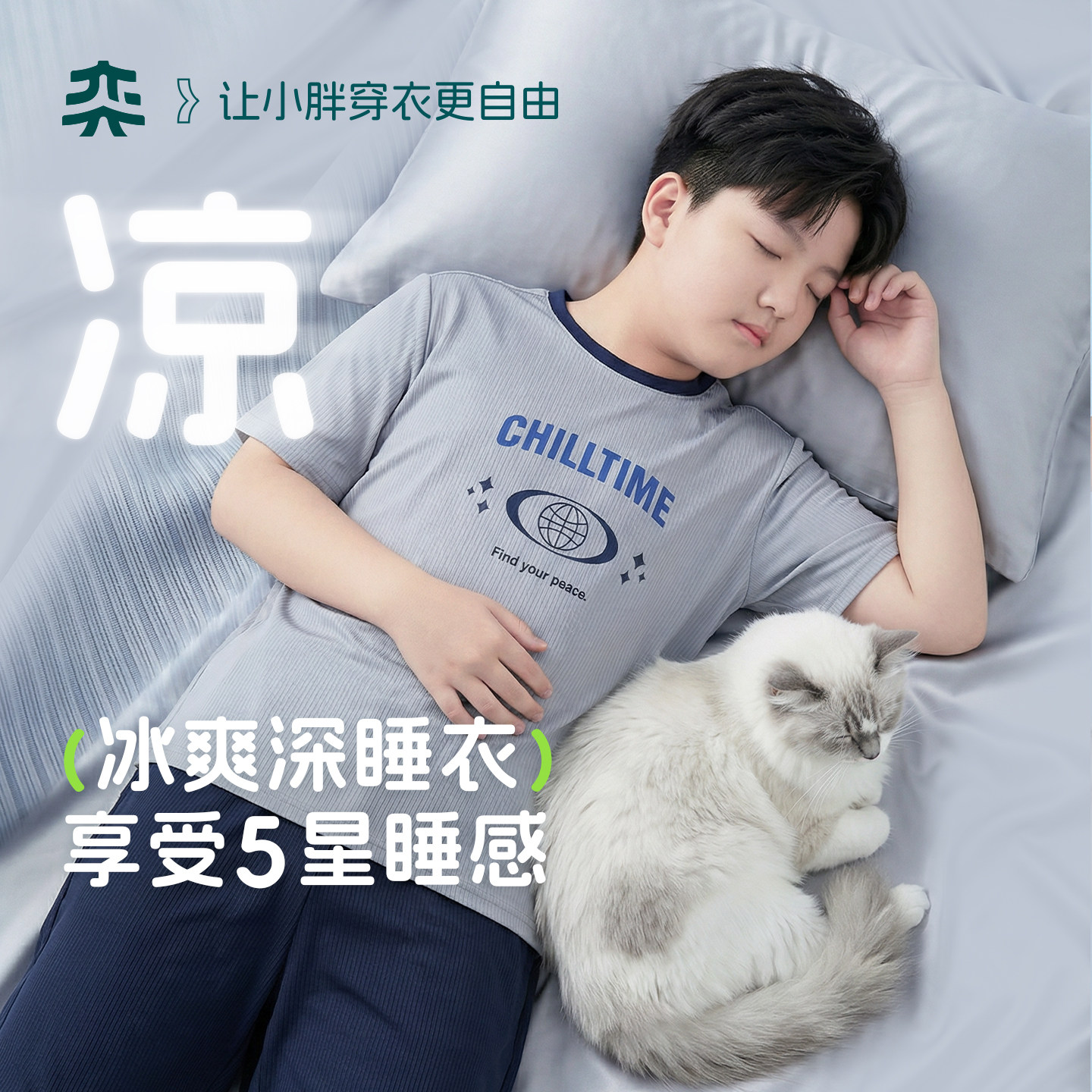 【冰爽深睡衣】奕时代大码男童10A抑菌睡衣中大童家居服套装透气