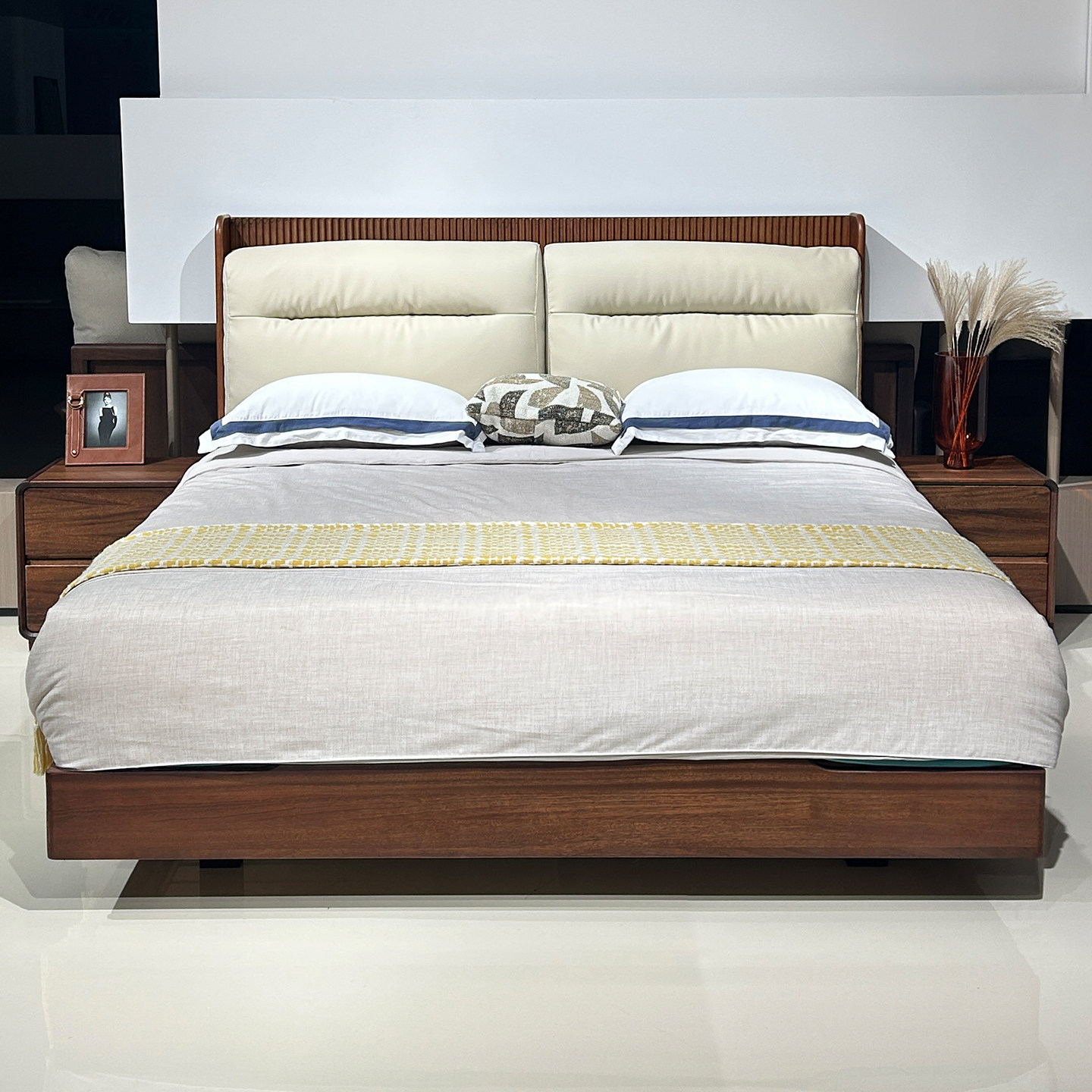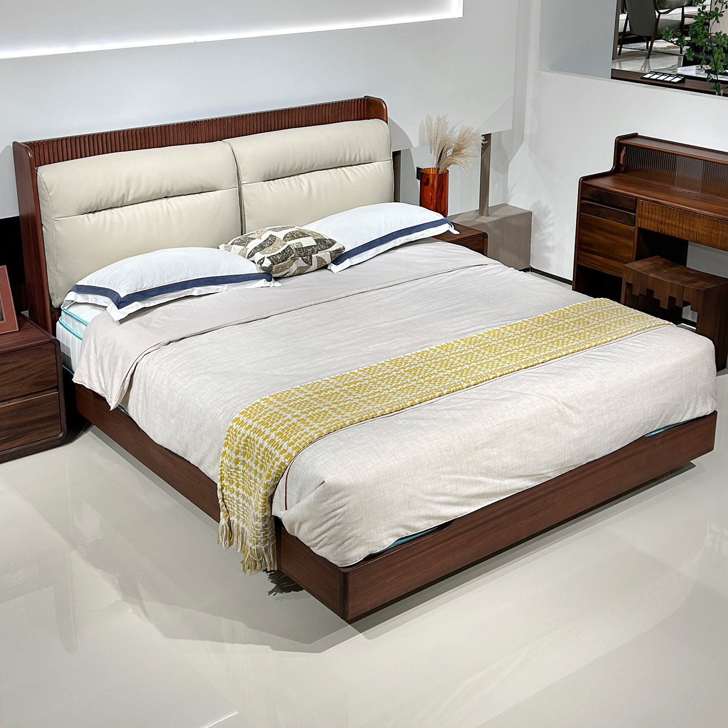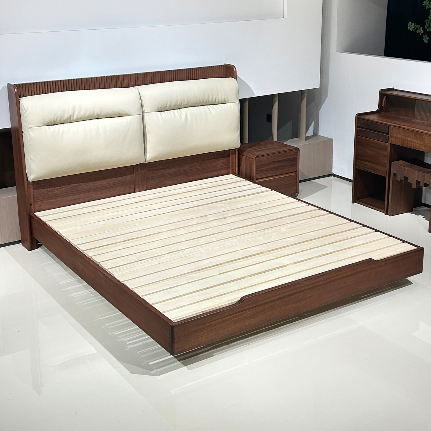 全实木床主卧现代简约1米8真皮双人大床1米5悬浮床核桃木2026新款