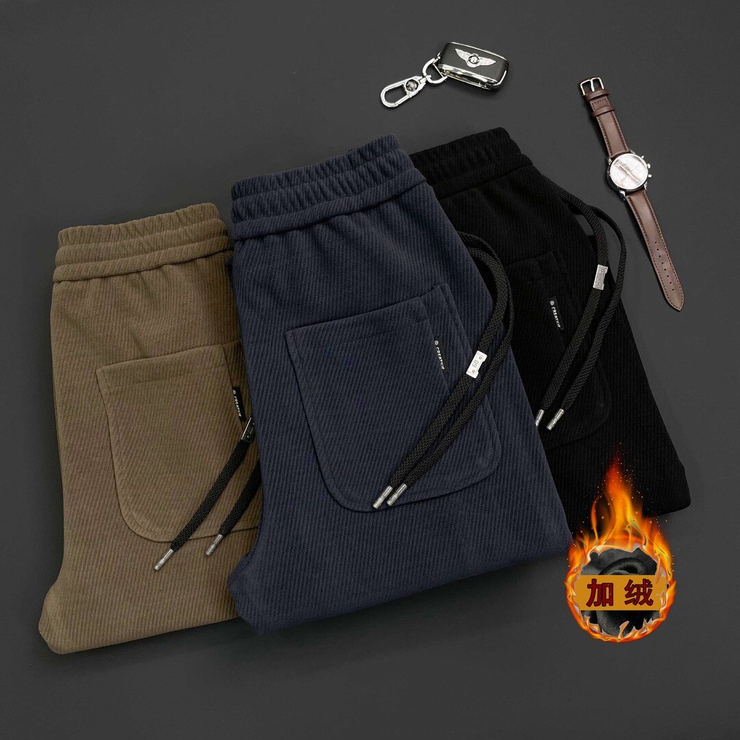 2025冬季加绒加厚新品高奢欧棉绒斜纹加厚加绒抗寒防风保暖休闲裤