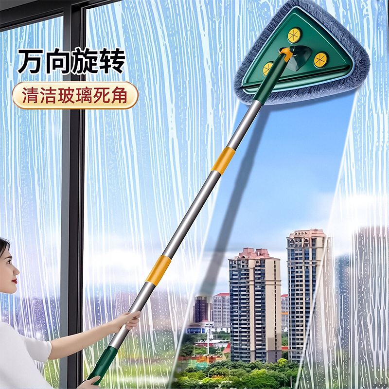 三角伸缩拖把擦墙神器家用天花板除棚顶清洁打扫卫生工具加长除尘