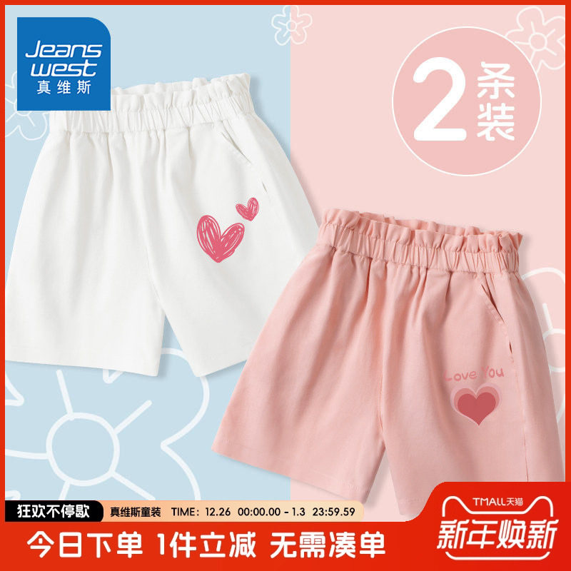 真维斯童装女童裤子女孩夏季新款花苞腰短裤儿童纯棉透气五分裤薄