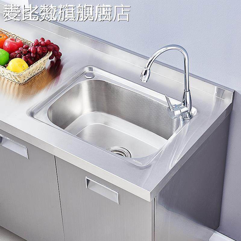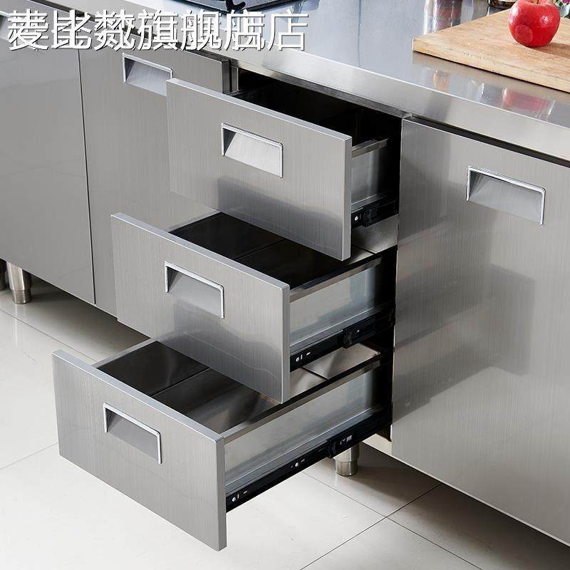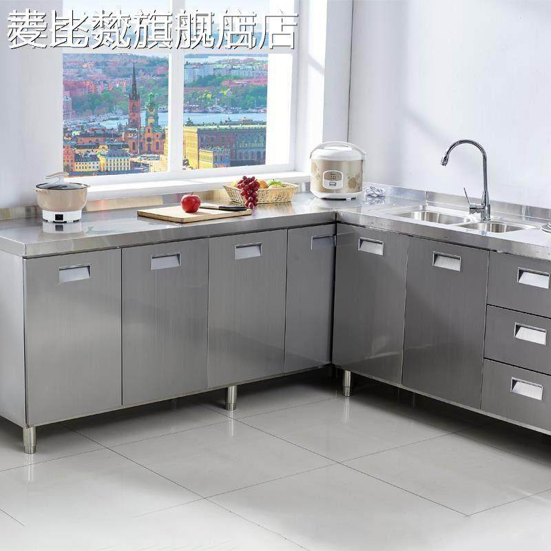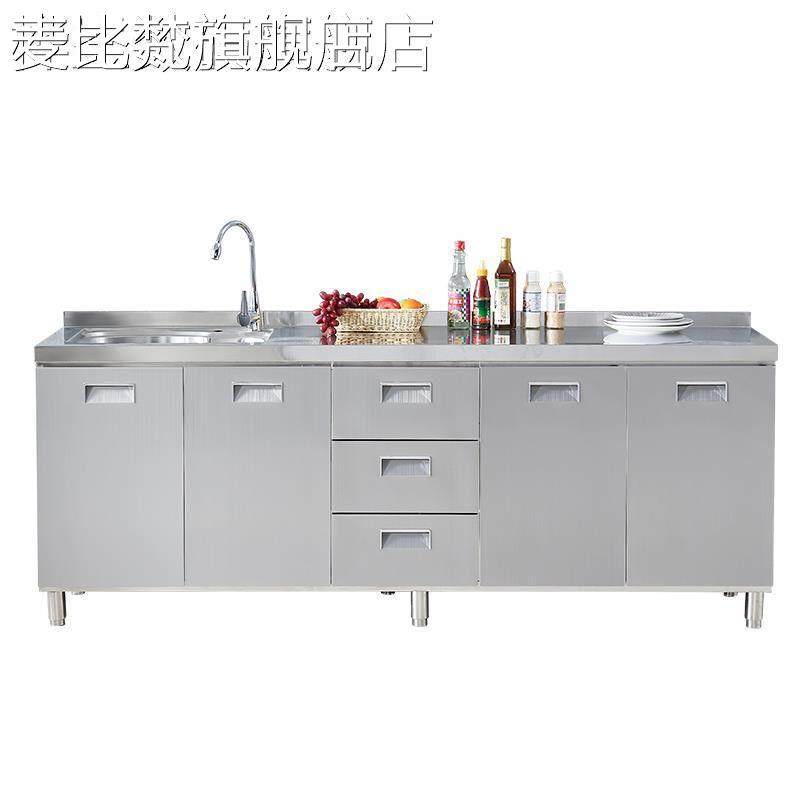 麦比梵304整体全不锈白钢厨房橱柜简易灶台一体储物收纳碗柜家用小户型床笠拉车