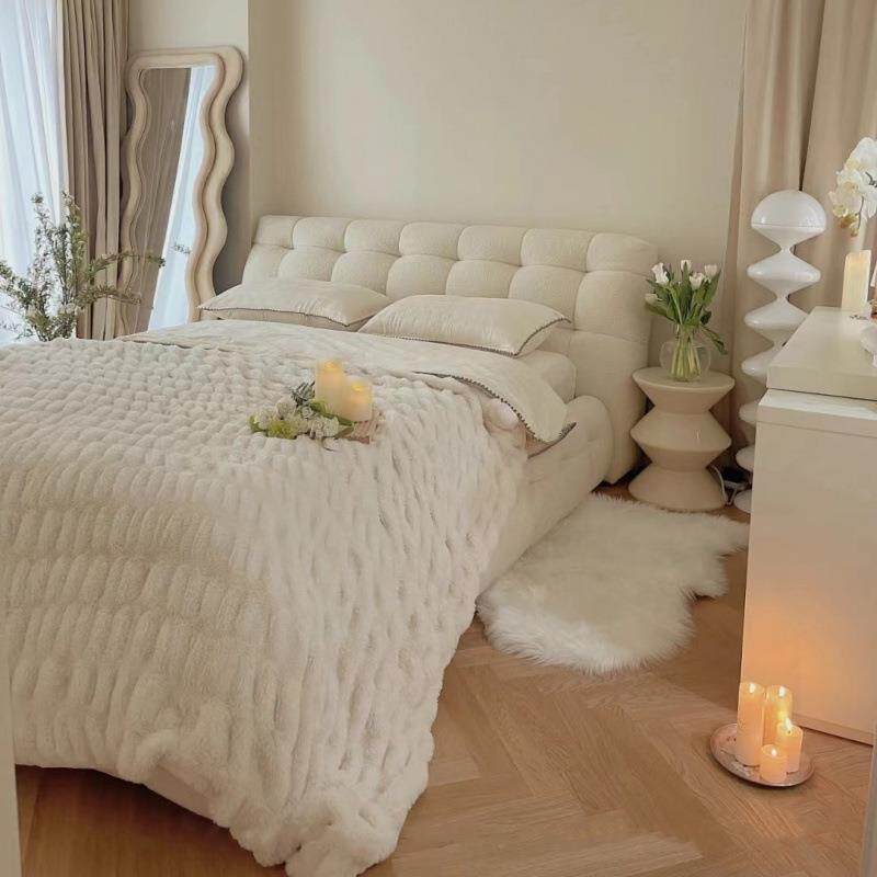 奶油风科技绒布艺床小户型客厅简约新款主卧大床卧室云朵双人床