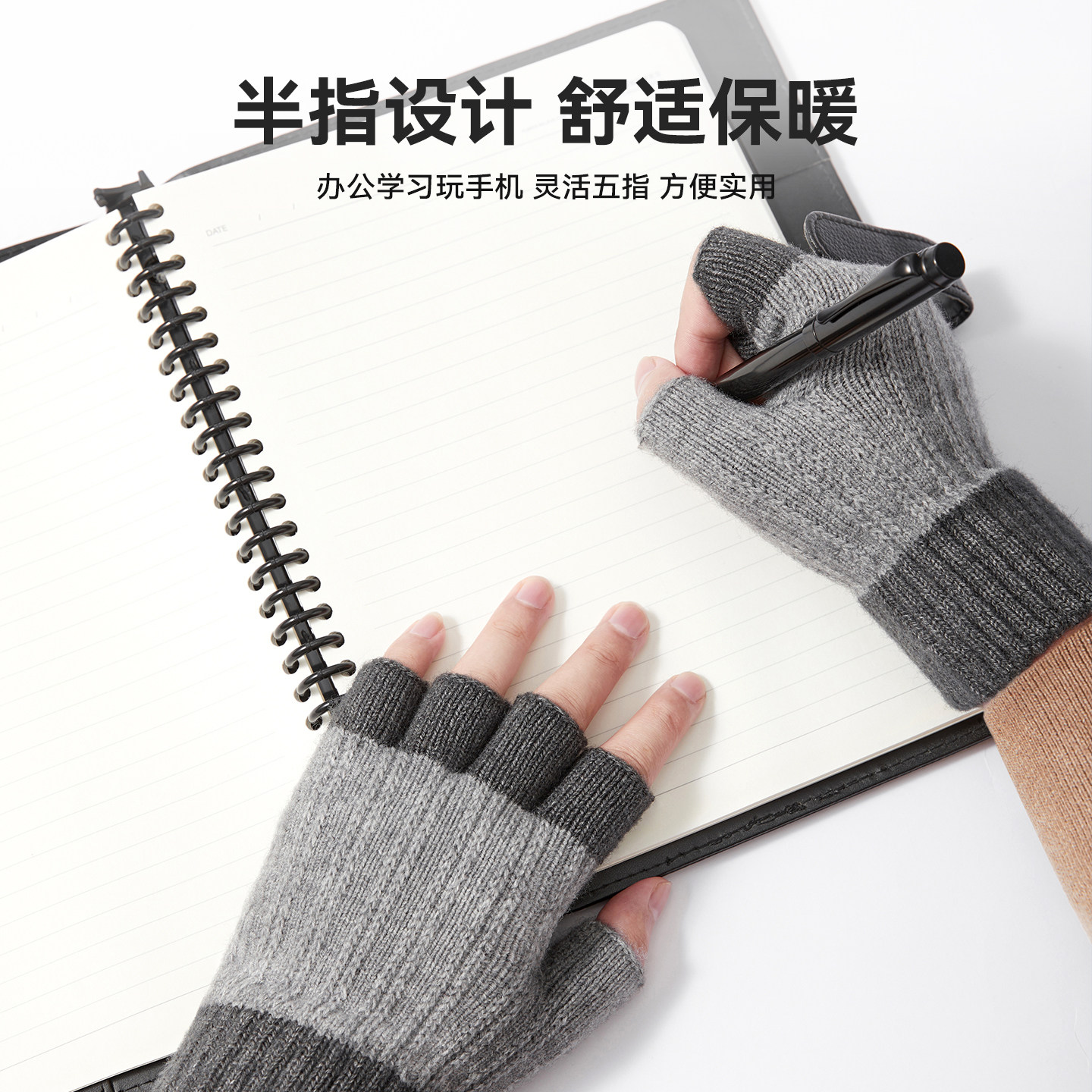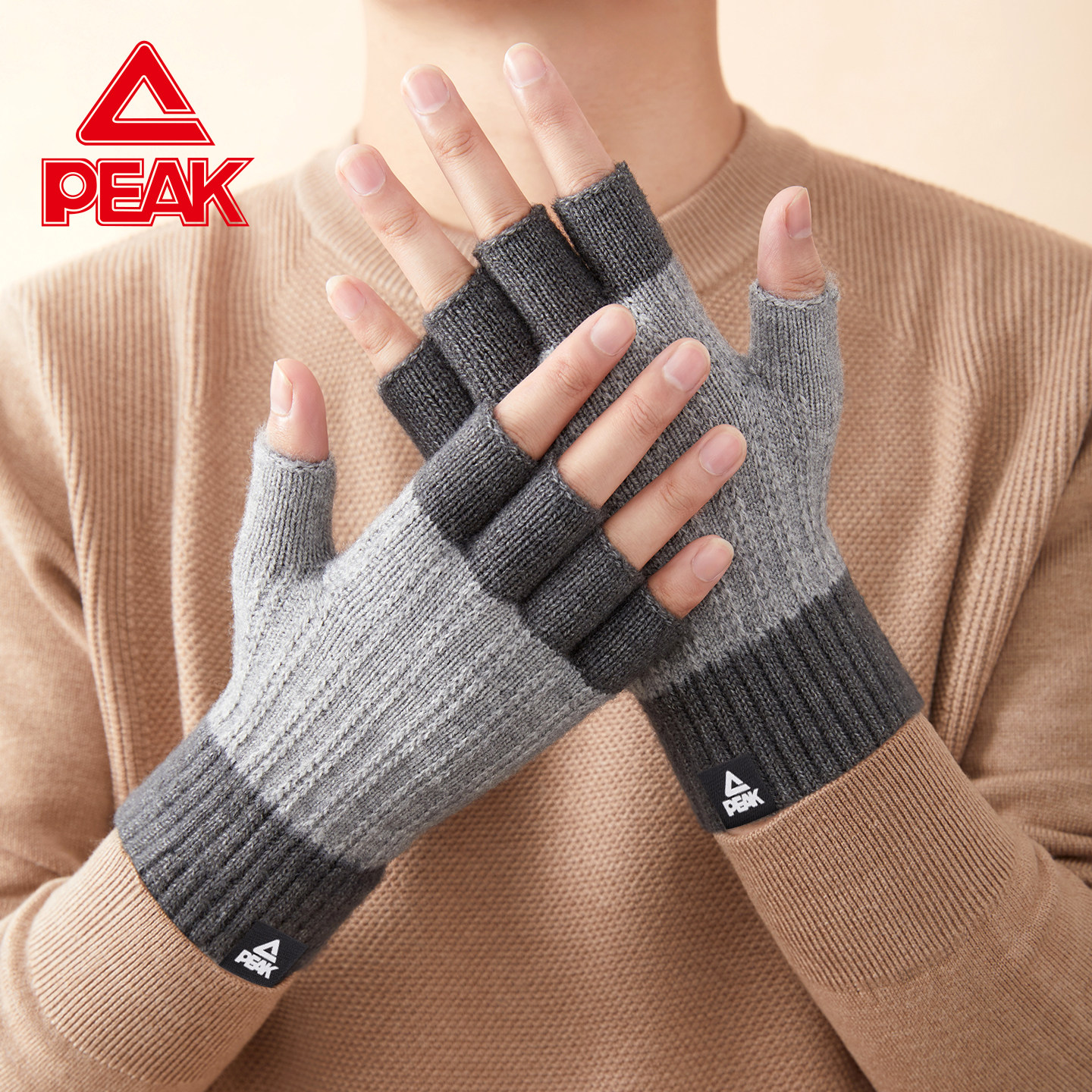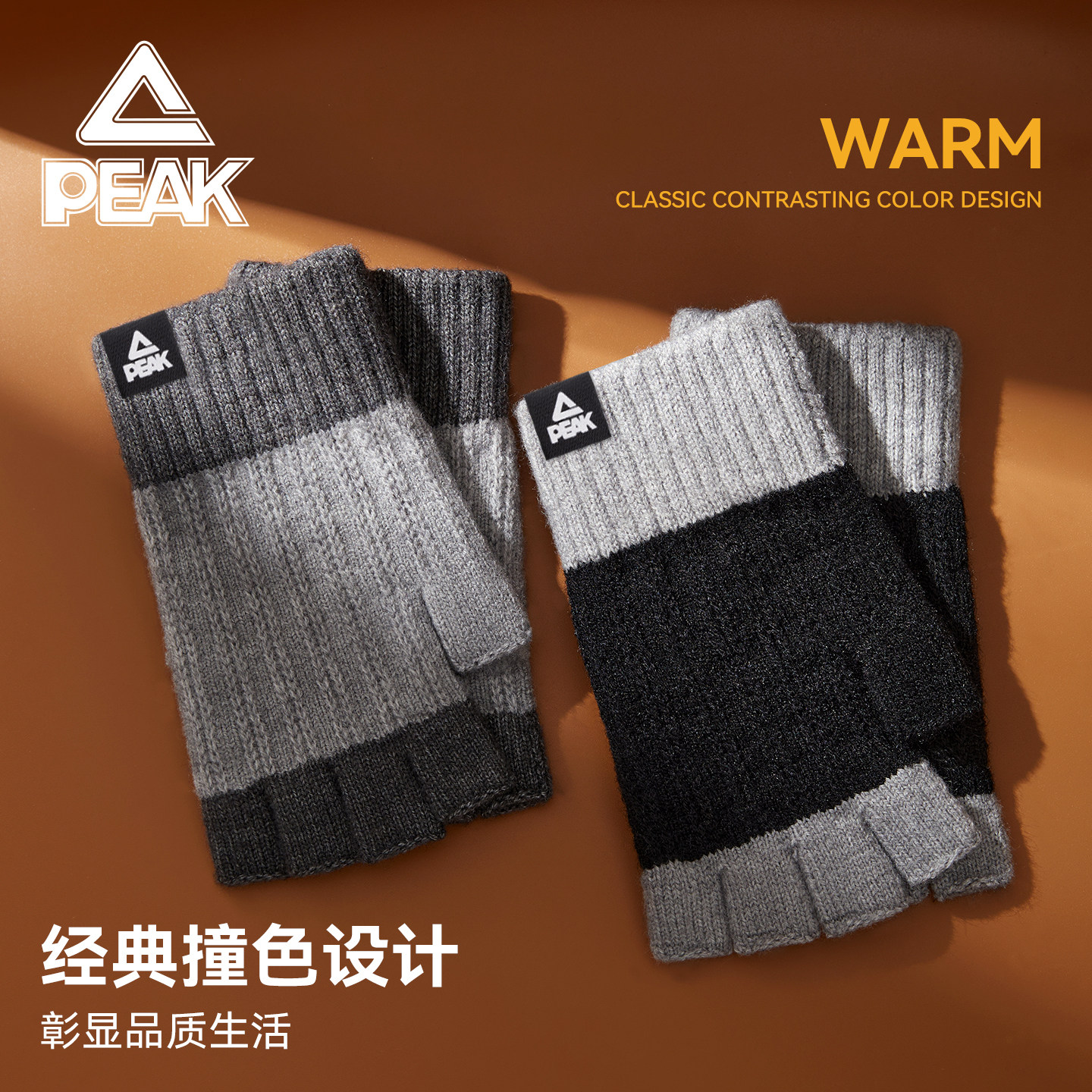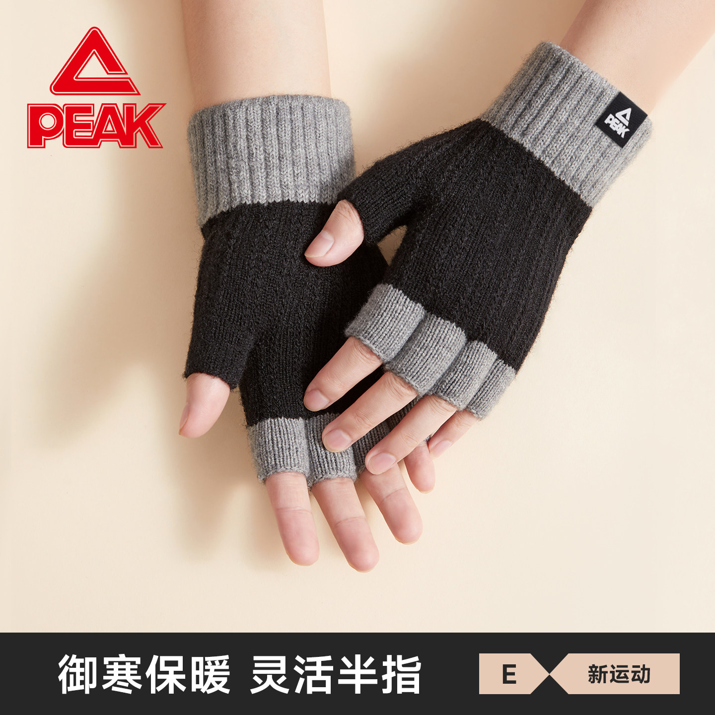 匹克半指针织手套男冬季新款防风保暖学生露指写字办公打字触屏女