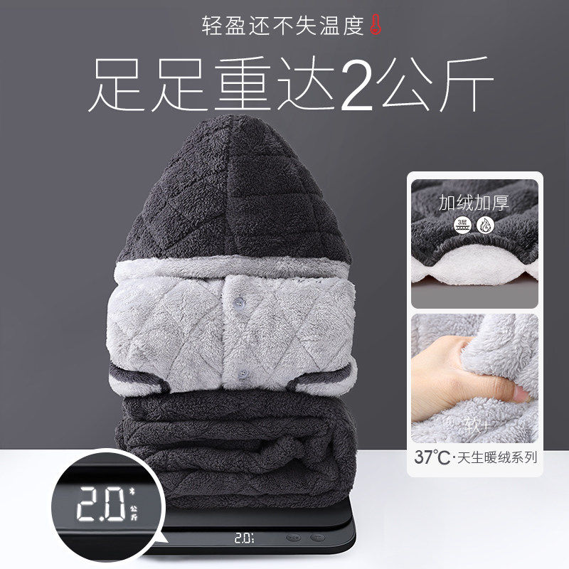 红豆睡衣男士秋冬季三层夹棉加厚加绒保暖珊瑚绒法兰绒连帽家居服