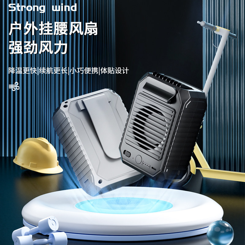 挂腰风扇随身携带便携式夹腰间小风扇usb充电扇户外挂脖露营工地外卖厨房夏季降温神器制冷空调衣强力大风力f