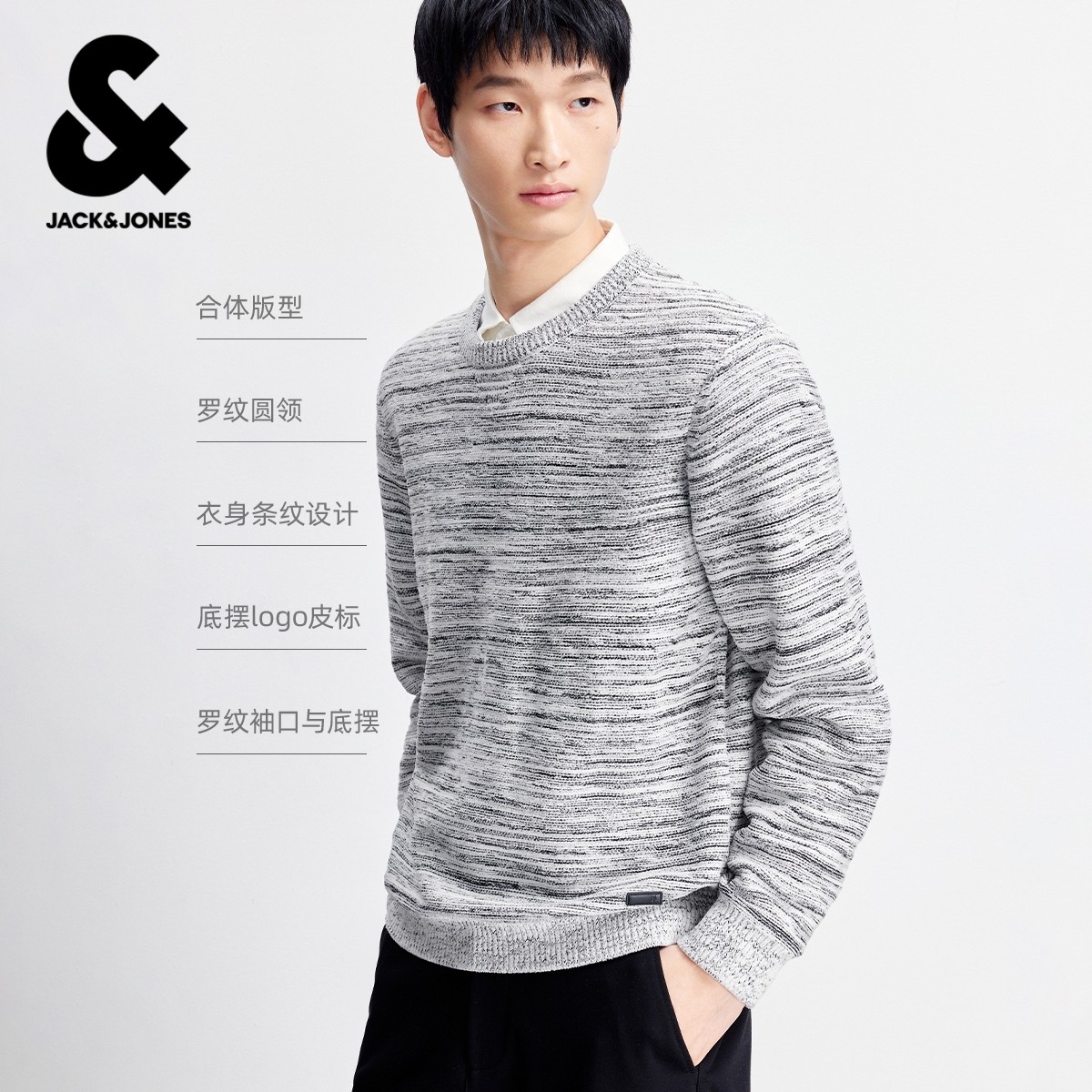 [条纹针织衫]杰克琼斯男装春季新款百搭时尚舒适暖和圆领毛衣上衣