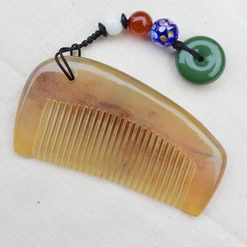 天然正品黄牛角梳子白牦牛角加厚便携专用女梳密齿按摩梳刻字长发