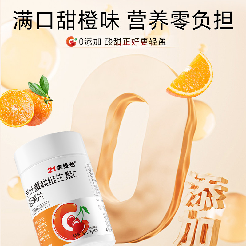 21金维他针叶樱桃维生素C咀嚼片VC补充成人维C正品多种B族VB男女J