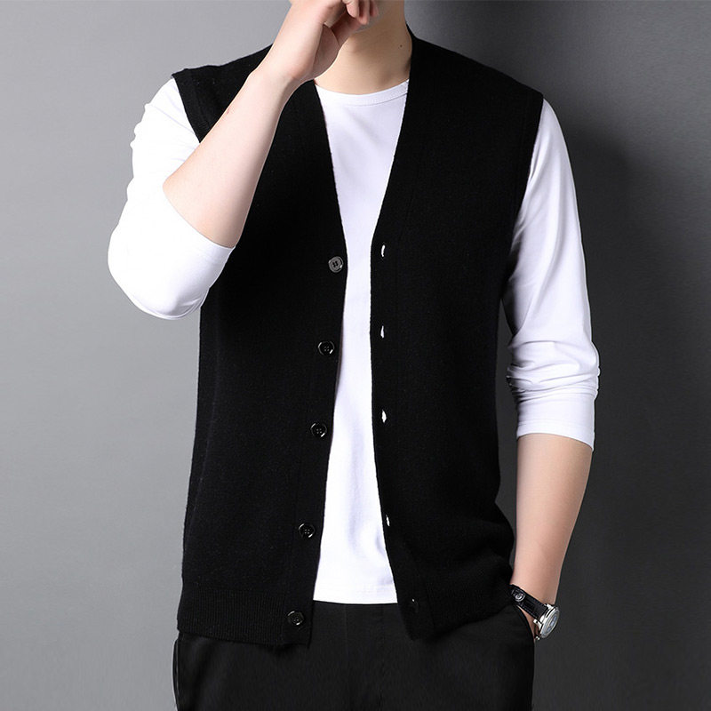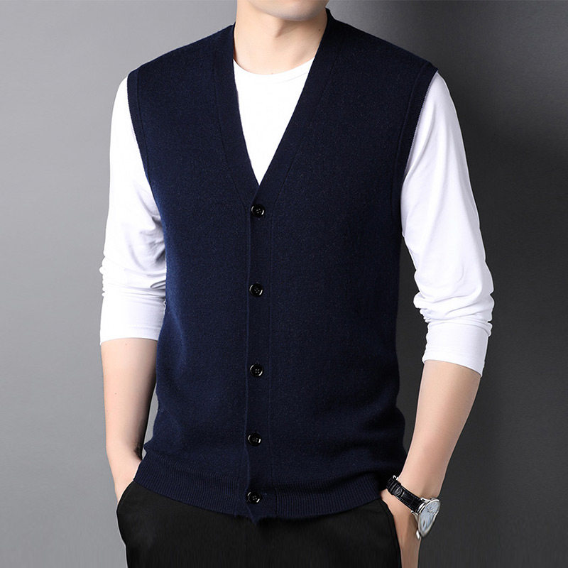 恒源祥纯羊毛开衫男西装马甲毛衣背心秋冬季加厚毛马夹无袖针织衫