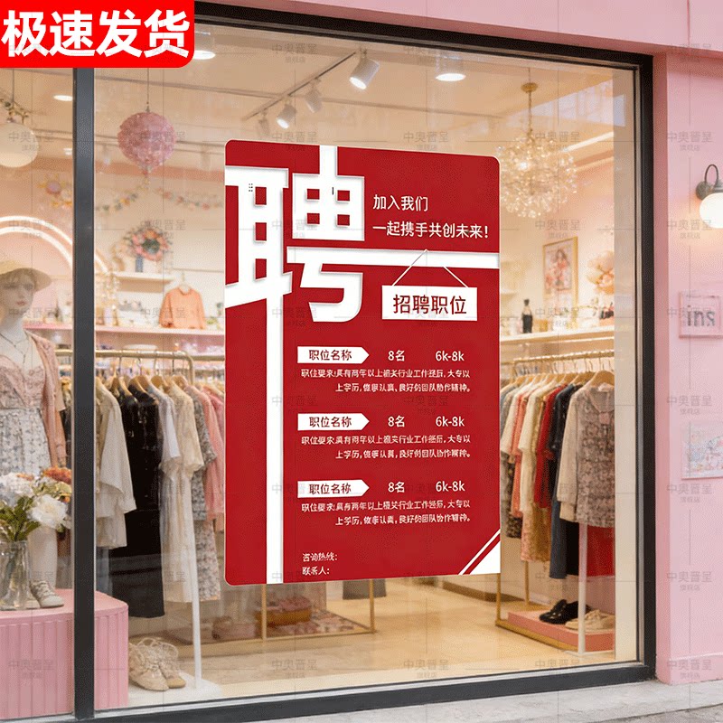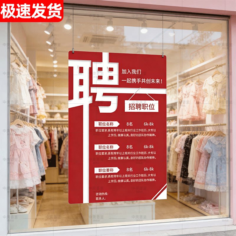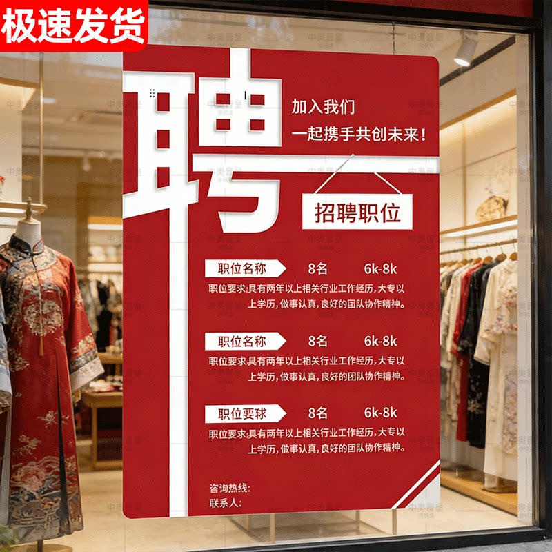 招聘海报设计招工广告定制招聘海报牌子设计招工广告贴纸招聘广告牌子展示牌自粘PP背胶高级感2026年新款贴纸