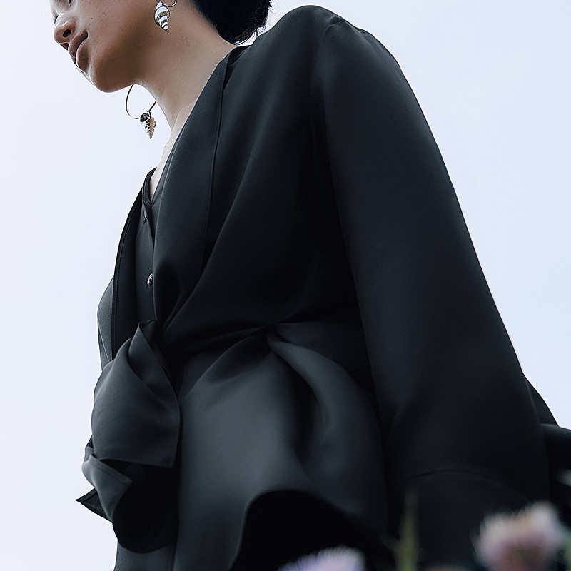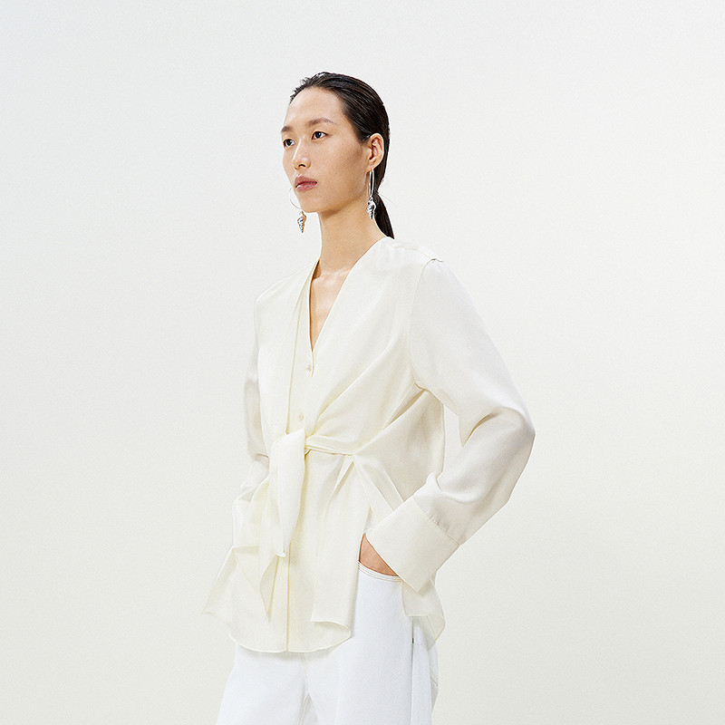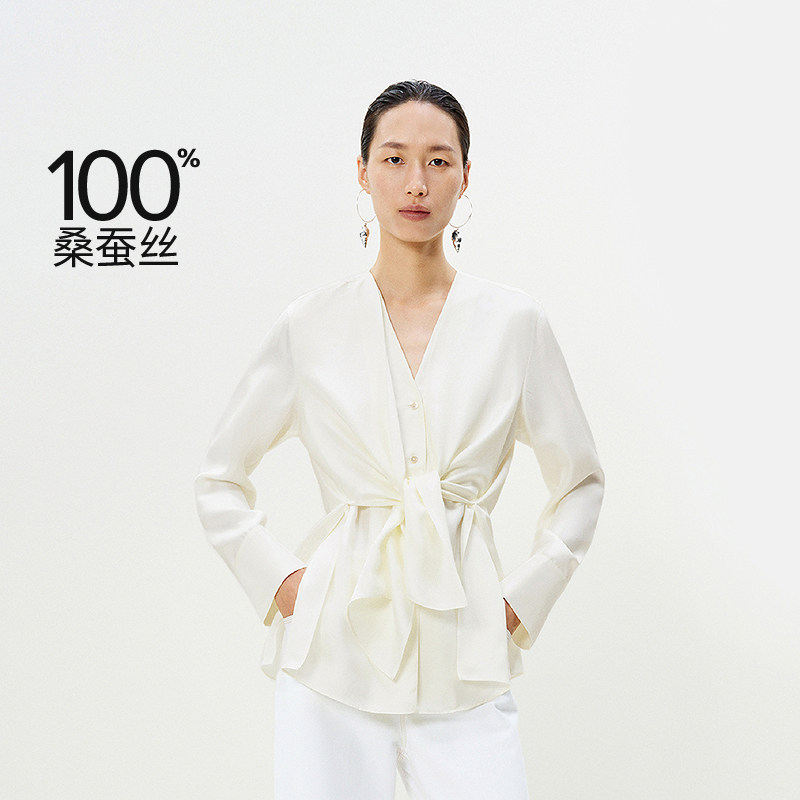 LESS春季桑蚕真丝衬衣女多种穿法设计感气质V领长袖衬衫2P2210920